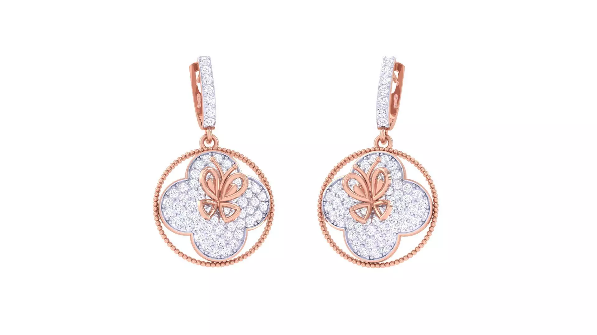 Butterfly on Flower High Jewelry Earrings 3dm stl 3dm stl obj 3D print model