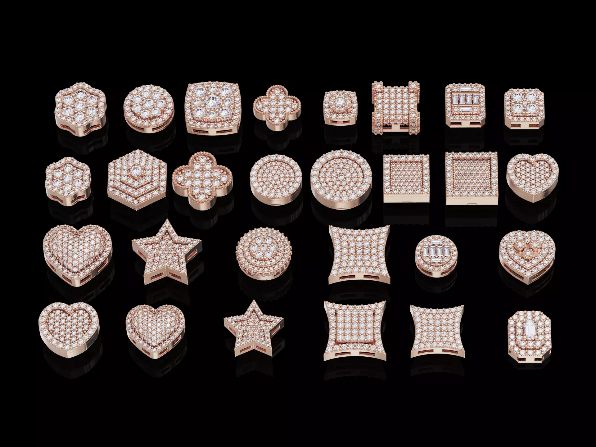 Unleash bold style with this exclusive collection of 28 Hip-Hop inspired earrings, crafted to bring shine, confidence, and versatility to any look. Featuring a wide range of shapes—hearts, stars, circles, squares, and more—each piece is fully iced-out with dazzling pavé settings, designed to maximize brilliance and capture attention from every angle.