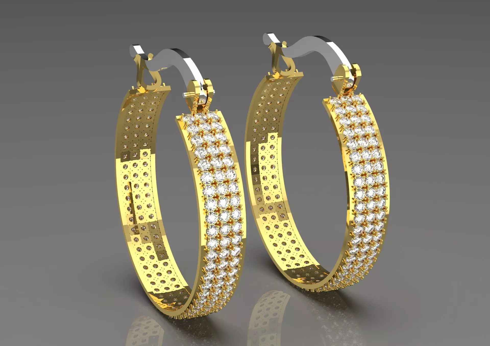 The standout element of these earrings is the row of sparkling gemstones that run along the front. These are high-quality diamonds that are intricately set to create a continuous line of brilliance that catches the light beautifully. Their arrangement adds both glamour and sophistication, making these earrings perfect for special occasions or evening wear.