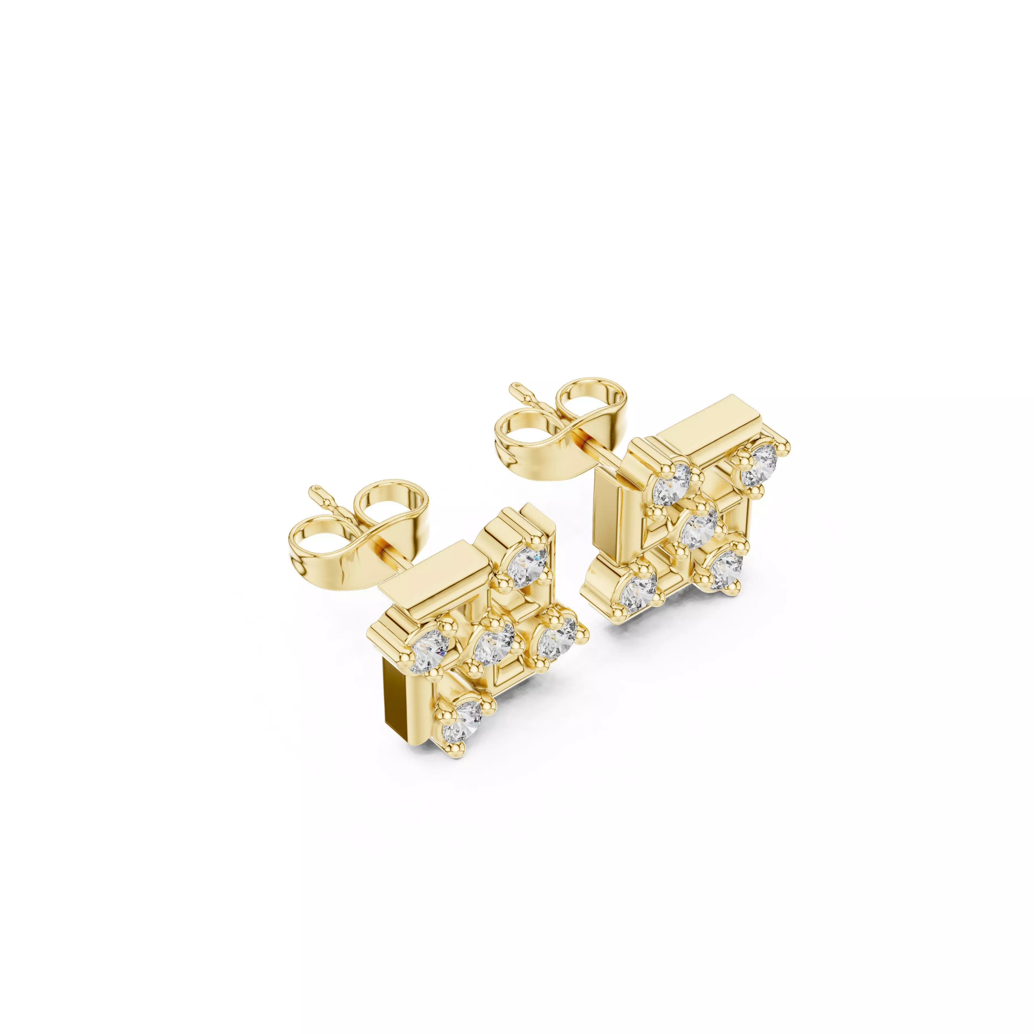 Geometric Diamond Cluster Stud Earrings with Interlocking Square Pattern and Modern Multi Stone Design