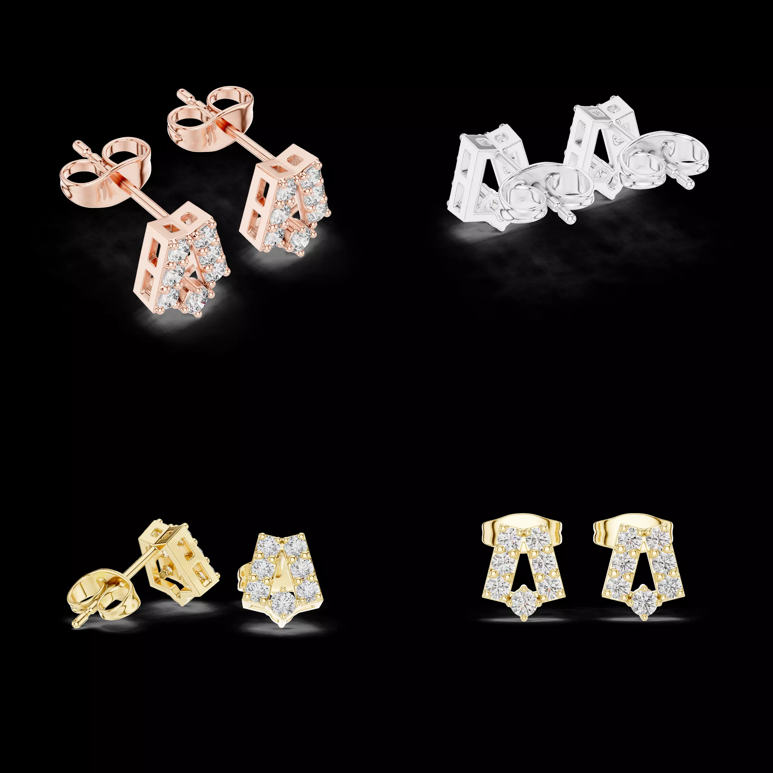 This luxury architectural diamond stud earrings 3D model is designed for professional jewelry designers and manufacturers who prefer bold geometry combined with refined elegance. The design features a structured open-frame form enriched with a multi-stone cluster, creating a premium contemporary aesthetic suitable for modern fine jewelry collections.