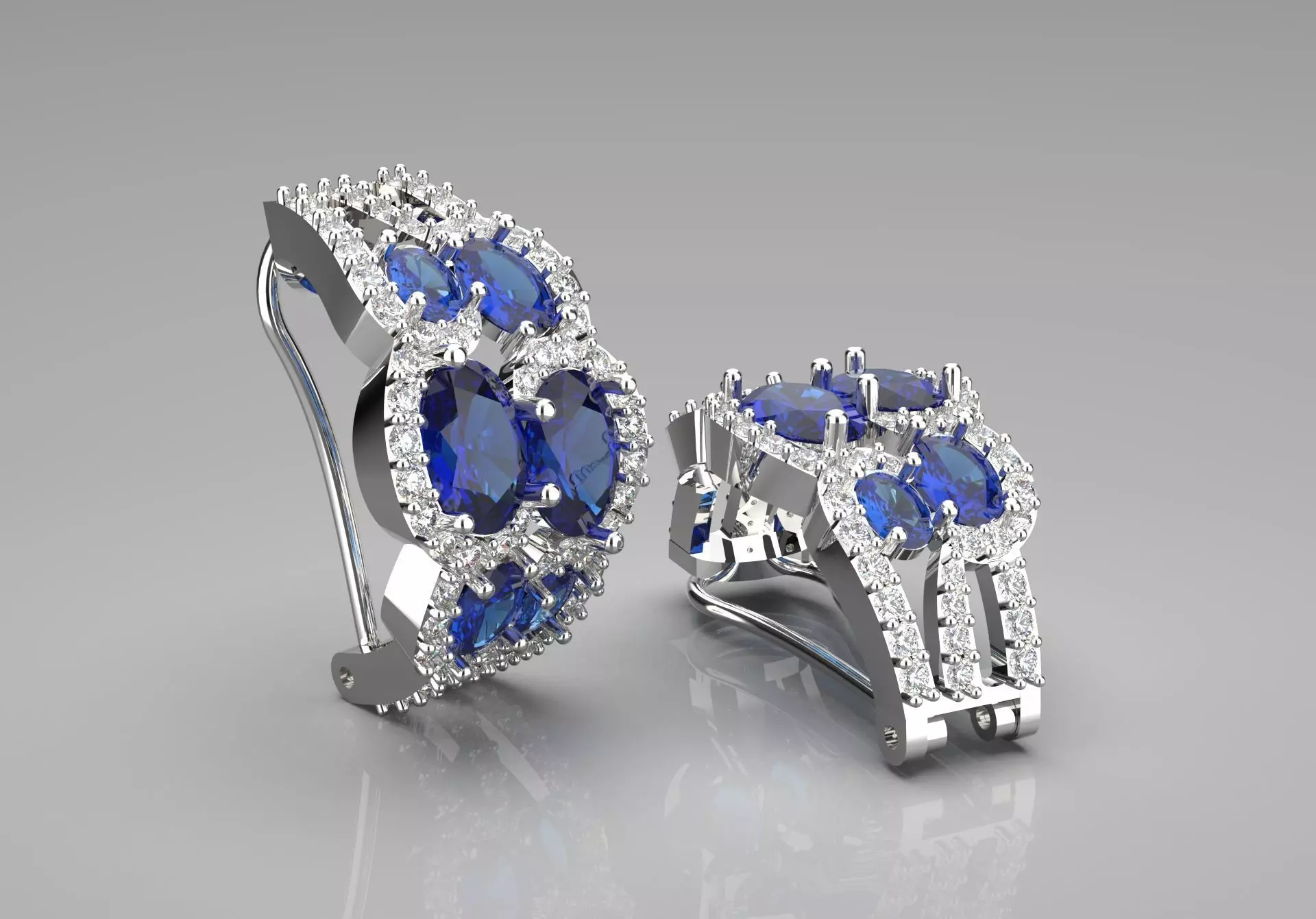 These jewel earrings with sparkling diamonds and sapphires add a luxurious and stylish touch to any style. The unique design and beautiful color combination make these jewelry an ideal choice for any occasion. With these earrings, show off your beauty and taste and shine in any crowd!