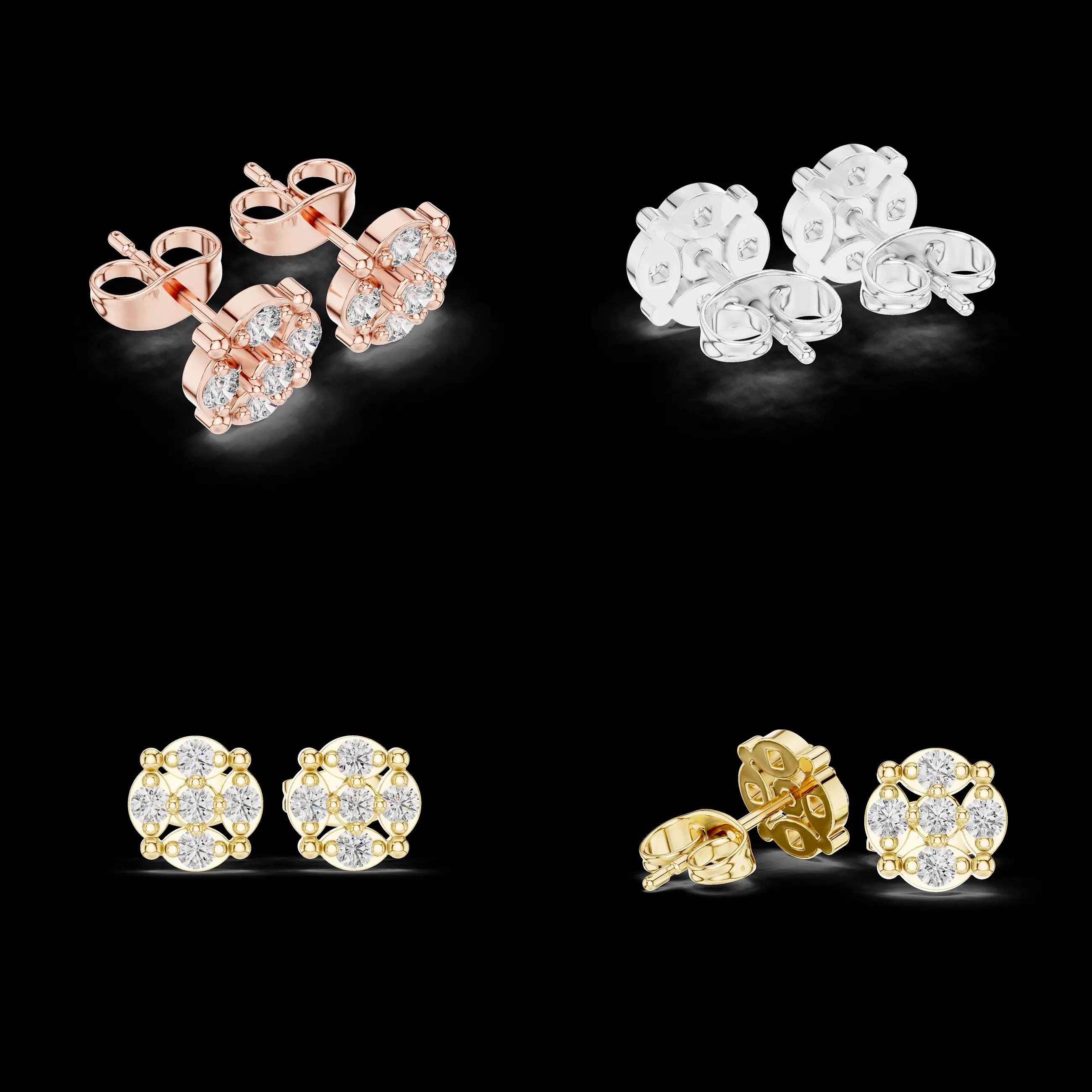 This premium-quality floral stud earrings 3D model is professionally designed for high-end jewelry production and realistic rendering. The design features a sophisticated multi-stone floral arrangement that gives a timeless luxury appearance suitable for modern, bridal, and everyday fine jewelry collections.