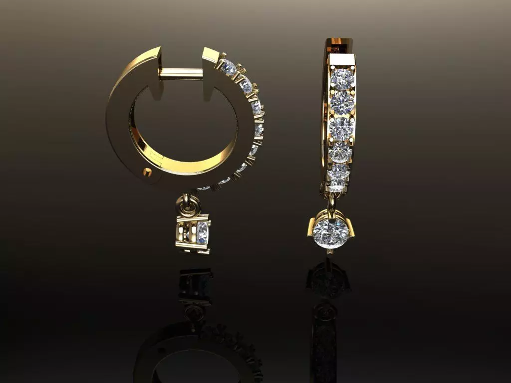 Mid Size Diamond Dangle Hoop Earring 2MM