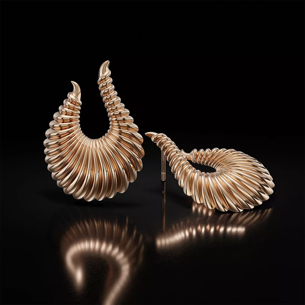 • Model Name: NOZHAN • Categories: Earrings, Gold, Jewelry • Style: Statement / Sculptural / Contemporary • Approx. Weight: 17.400 grams (in 18K gold) • Structure: Spiral layered form • Geometry: Smooth, production-ready CAD model