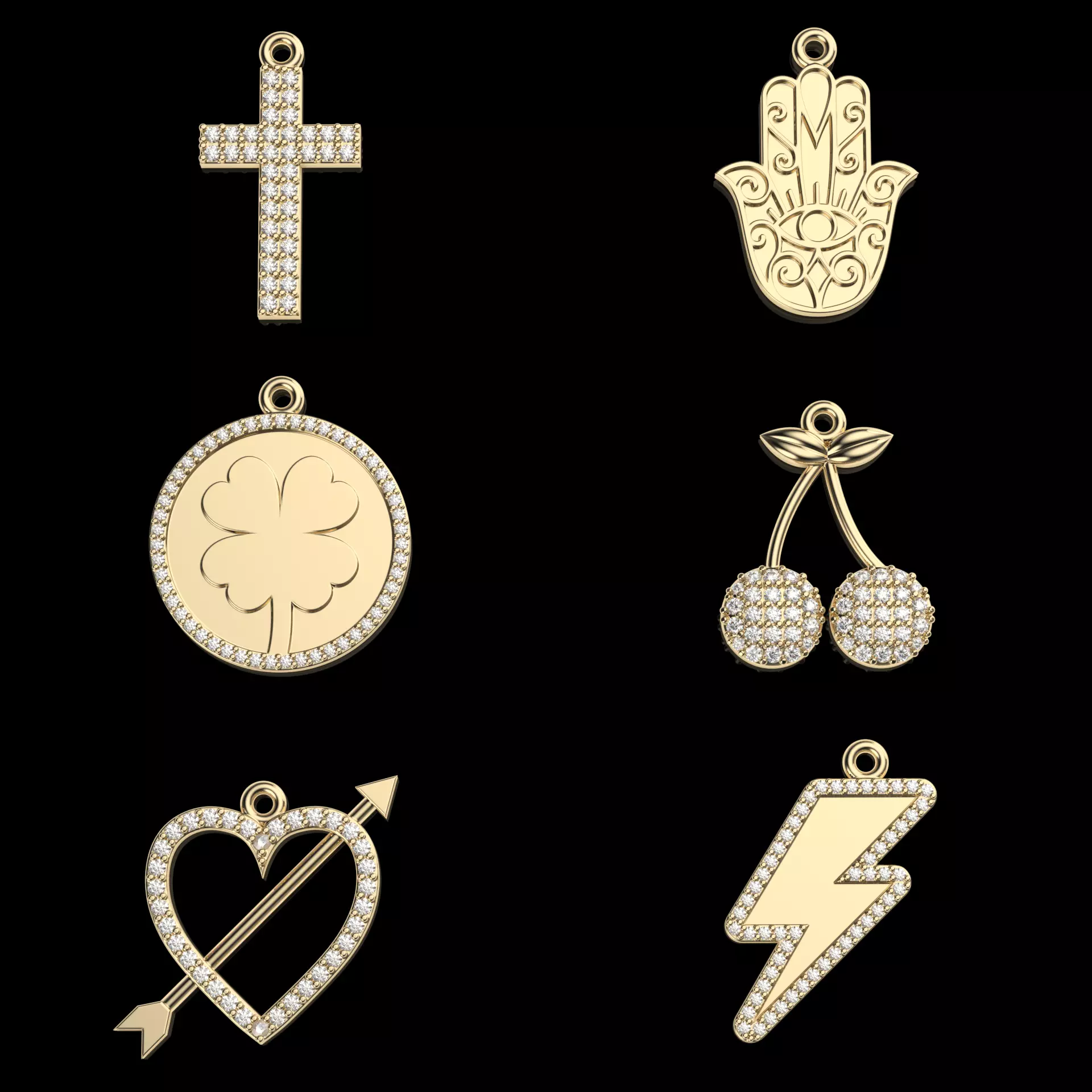 Este paquete incluye 6 dijes de joyería en 3D listos para usar en proyectos de diseño, impresión 3D o visualización de alta calidad. Cada pieza combina elegancia y significado, perfectos para colecciones modernas de accesorios.