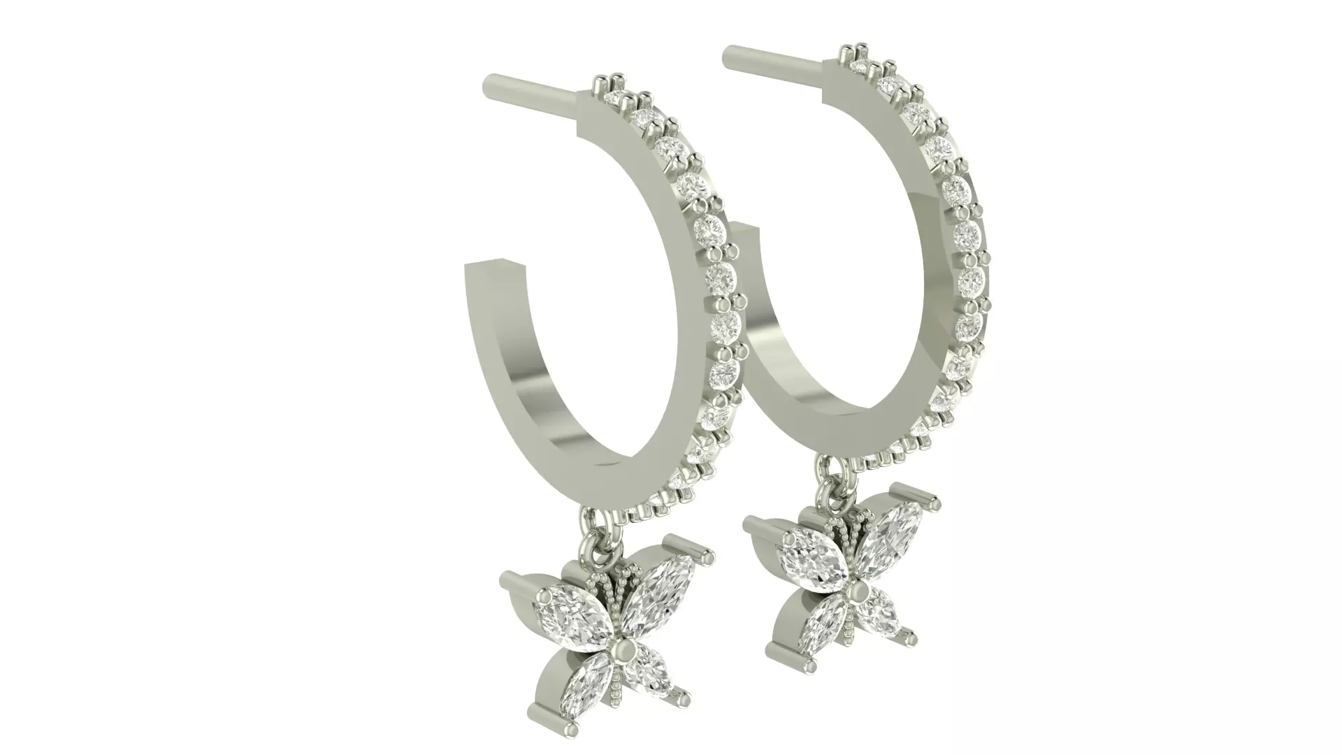 Pave hoop butterfly earrings 3D print model