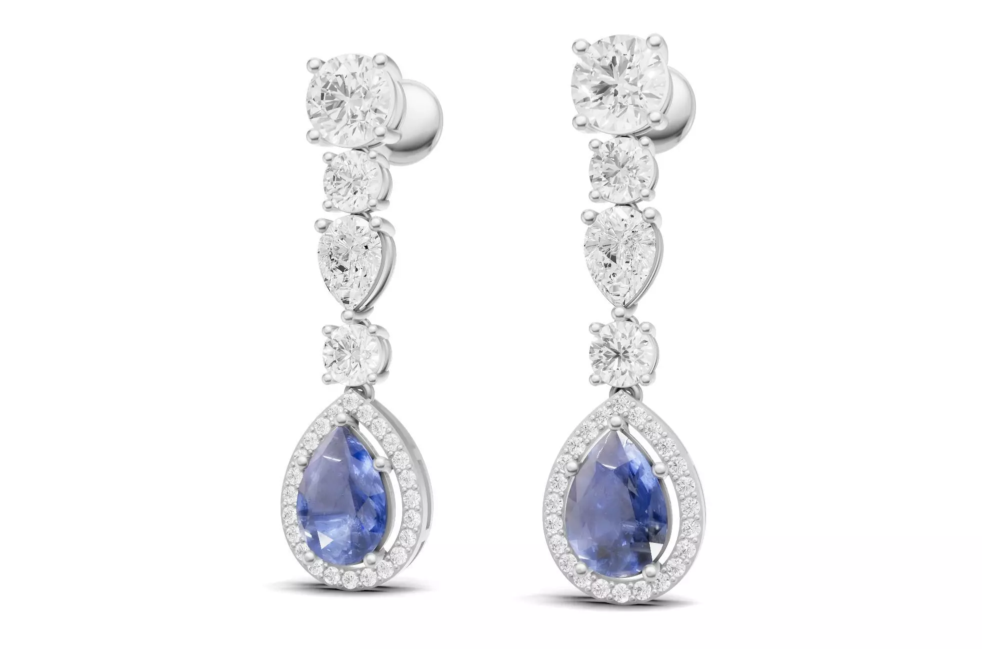 Pear Cut Blue Sapphire and Diamond Drop Earrings For Women 3D print model