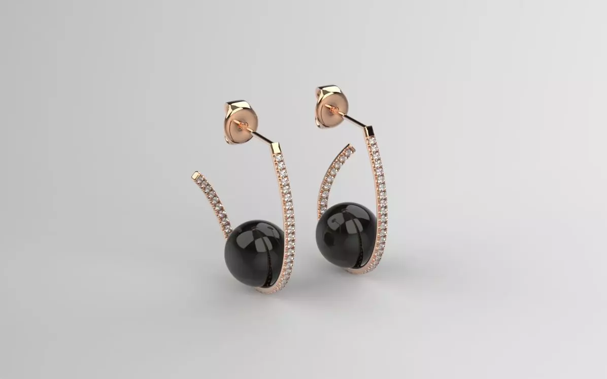 Pearl and diamonds Hoop earrings model for women 3D print model