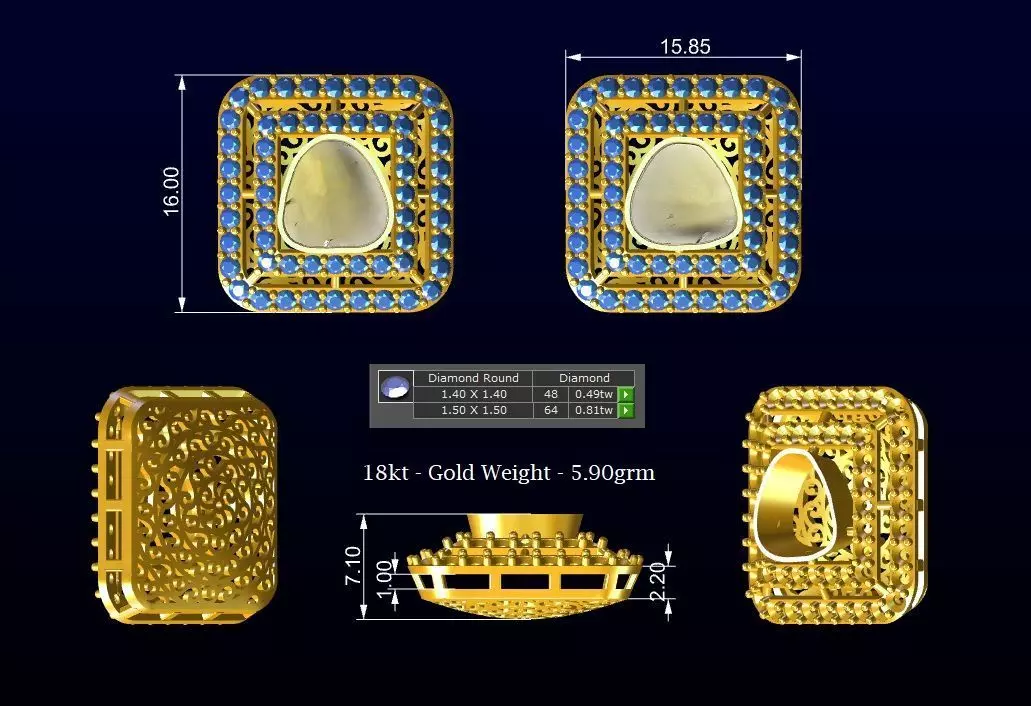 Polki Diamond Earring - Gold Cluster Tops No7 3D print model