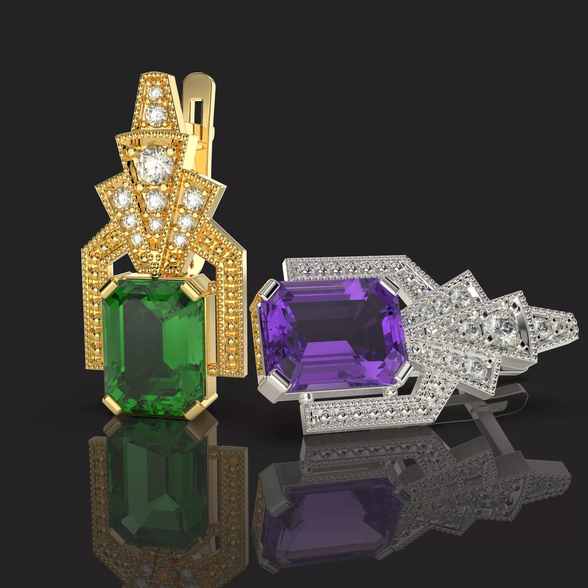 silver 925-4.7 gramsThese two earrings haveGems shape : emerald 9*7mm-2 pieces,gems weight-5,16ct. round 1.0-8 pieces,gems weight-0,03ct. round 1.2-4 pieces,gems weight-0,026ct. round 1.5-8 pieces,gems weight-0,1ct.