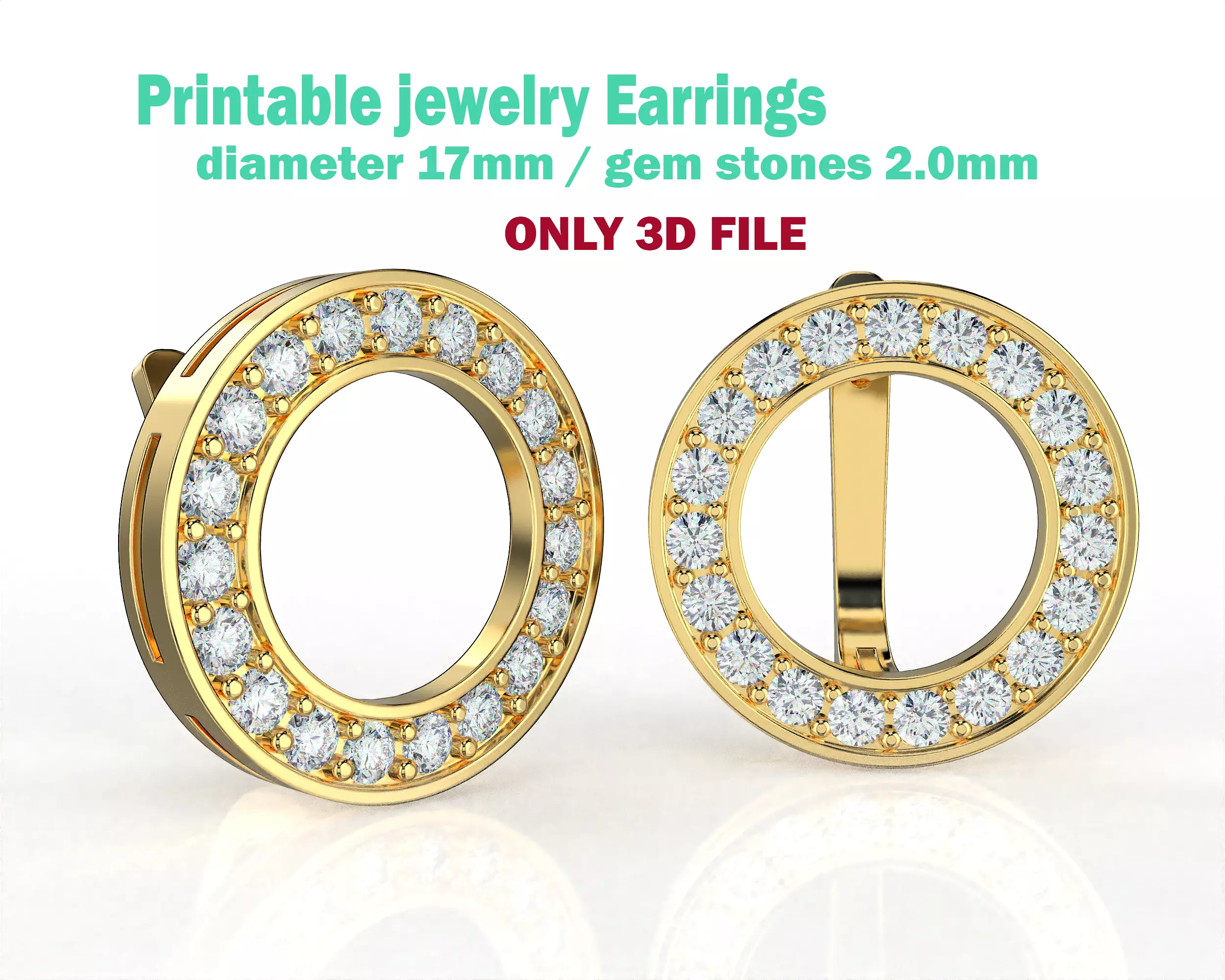 Printable jewelry earring circle 17mm with diamonds 2mm - file STLNOTE:
