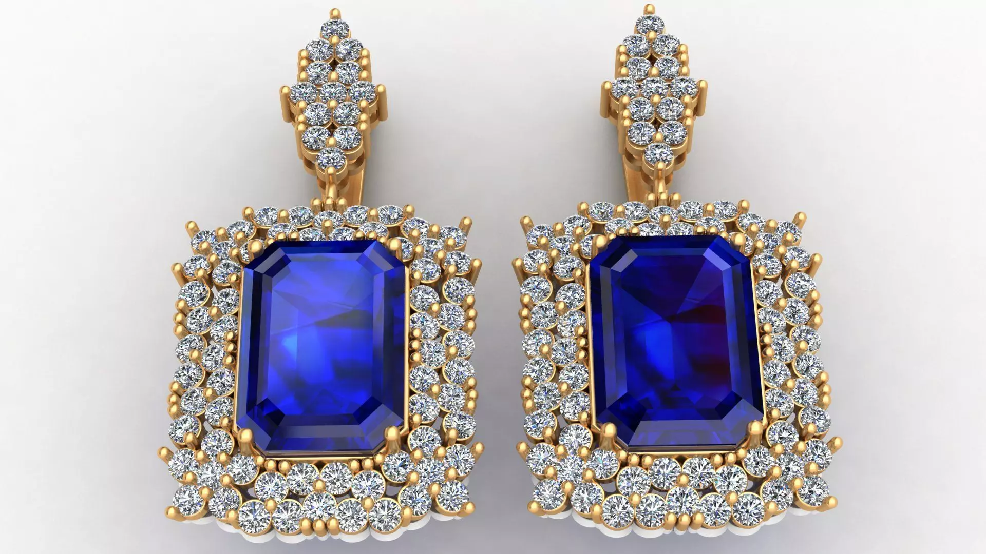 Rectangle Sapphire Diamond Gold Earring 3D print model