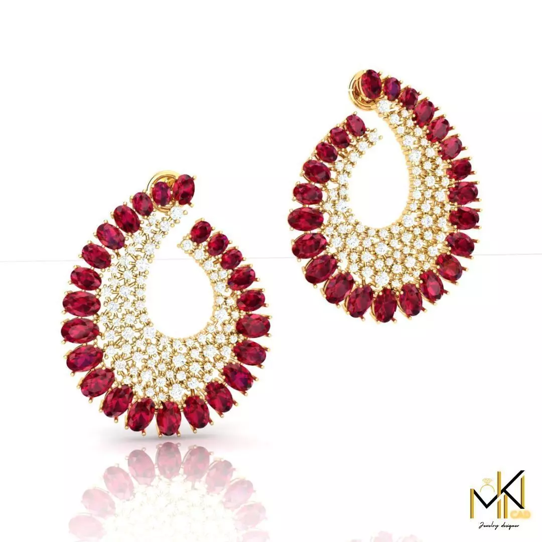 - Red Stone Earrings With Sparkling Diamonds