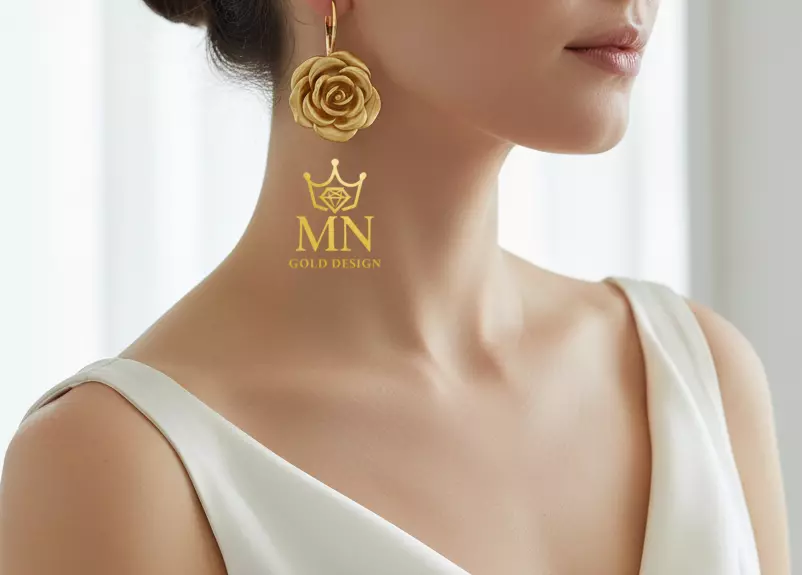 Each earring is carefully designed to capture the natural curves and details of a rose, symbolizing love, grace, and elegance. The smooth, golden finish enhances the depth of the design, giving it a luxurious and radiant appearance.