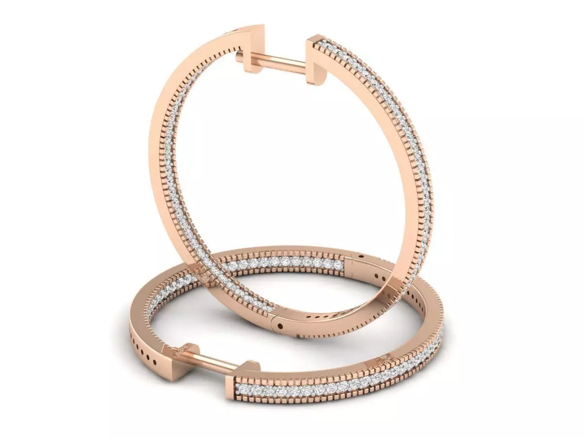 Round Diamond Ladies Hoop Earrings 3D print model