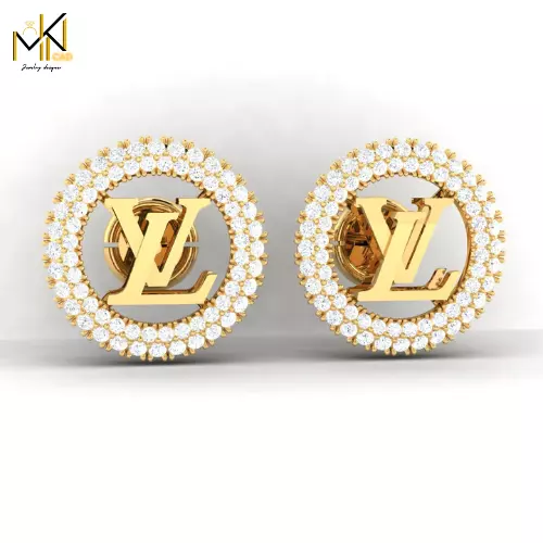 This luxury-inspired gold stud earring 3D model features a bold central monogram framed by a halo of precision-set round brilliant diamonds. Designed for professional jewelry CAD designers, manufacturers, and 3D artists, this model is perfect for photorealistic renders, animations, and 3D printing.