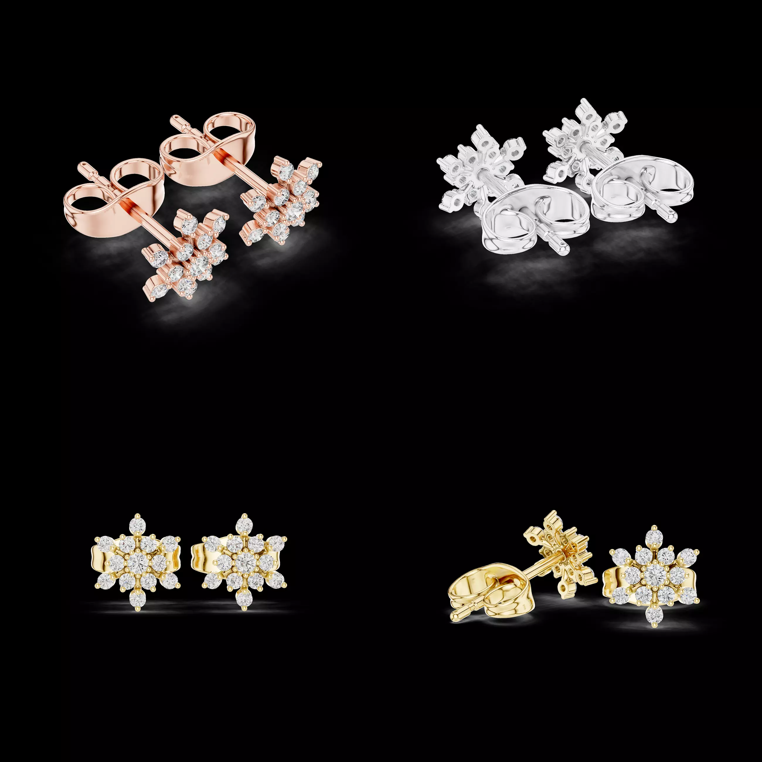This snowflake cluster diamond stud earrings 3D model is designed for professional jewelry designers and manufacturers who want a visually rich yet commercially versatile piece for luxury collections. The design is inspired by a symmetrical snowflake form, where multiple precisely placed stones create a balanced, radiant, and highly premium appearance.