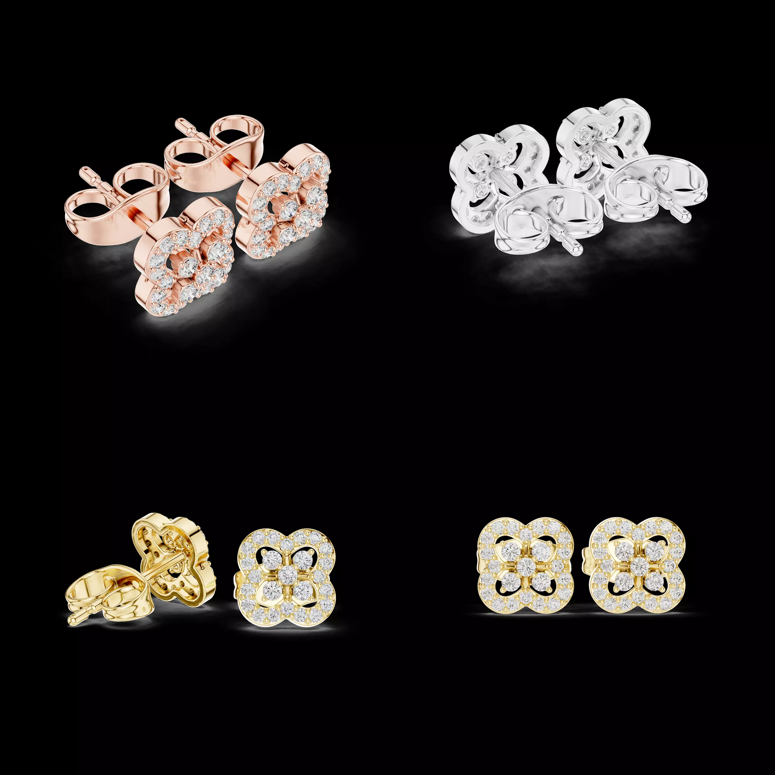 This product is a professional 3D CAD jewelry model of square cluster stud earrings, designed for real manufacturing and workshop use. The design features a soft square floral cluster structure with multiple round stones arranged for maximum brilliance and balanced symmetry. The overall form is elegant and commercially suitable for fine jewelry collections.