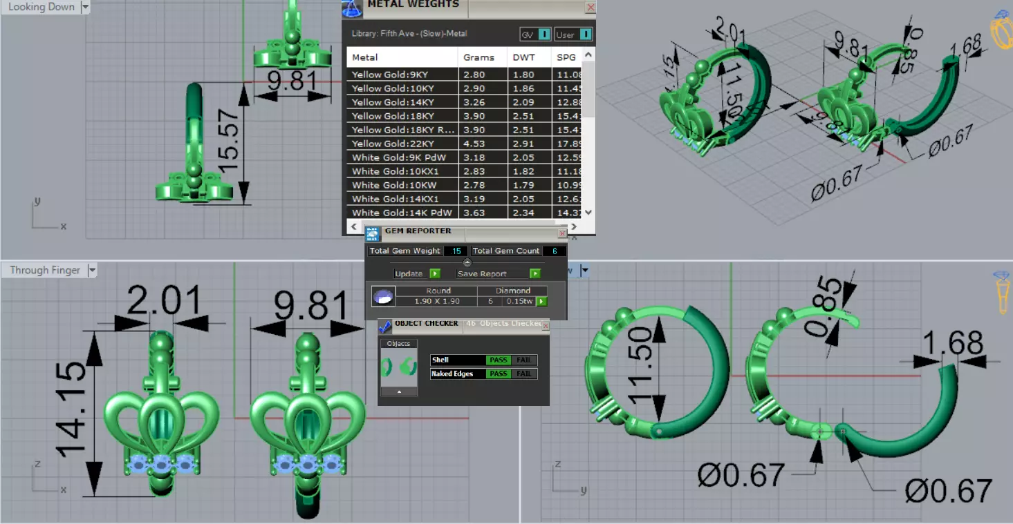Diamond Size and Carat Weight: 6 round brilliant cut diamonds. Total diamond weight 0.15 carats. Check the diamond chart attached in the image