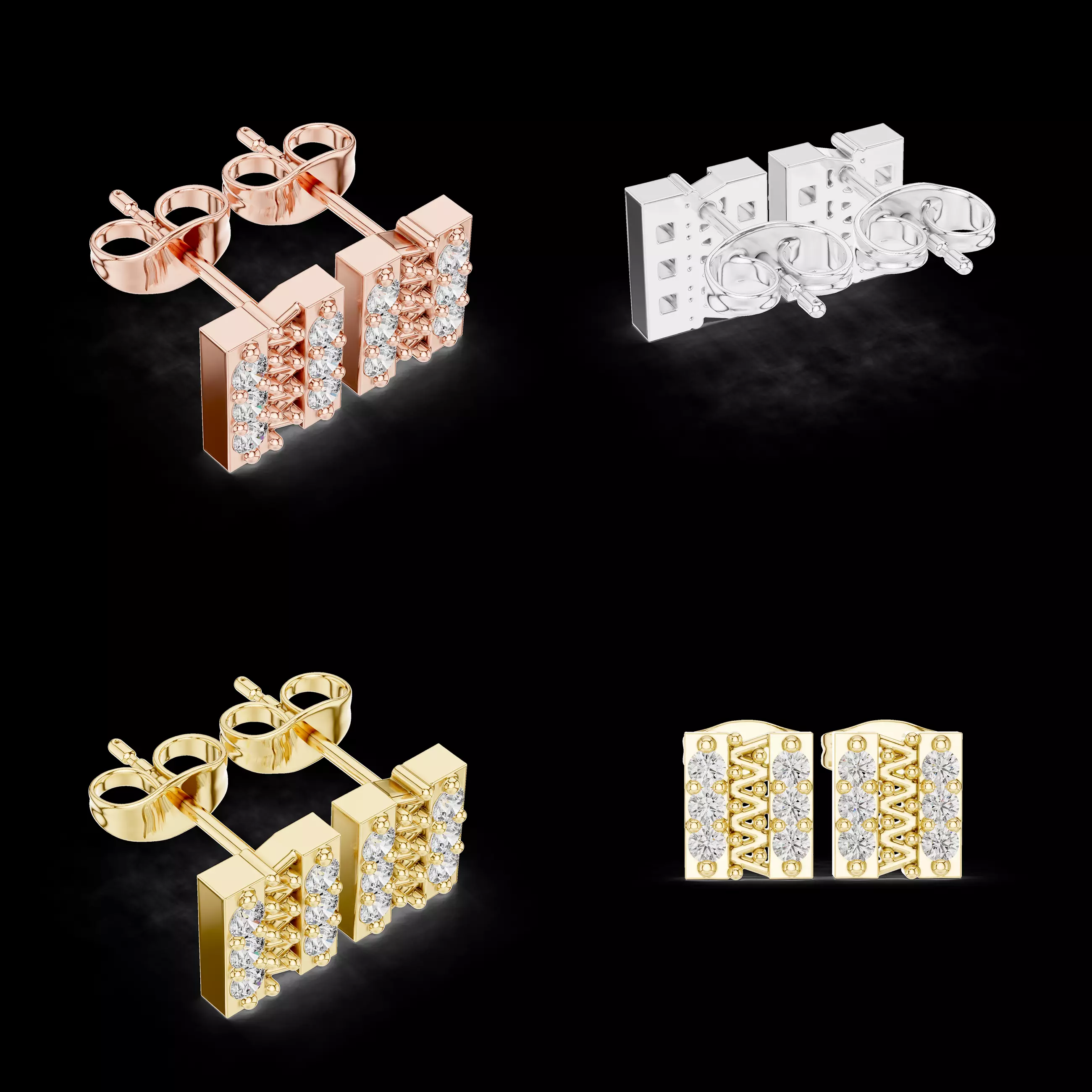 This vertical bar cluster stud earrings 3D model is a modern, production-ready jewelry CAD design developed specifically for professional manufacturing workflows. The design features a structured rectangular bar form combined with a compact multi-stone cluster layout, creating a bold yet elegant appearance suitable for contemporary fine jewelry collections.