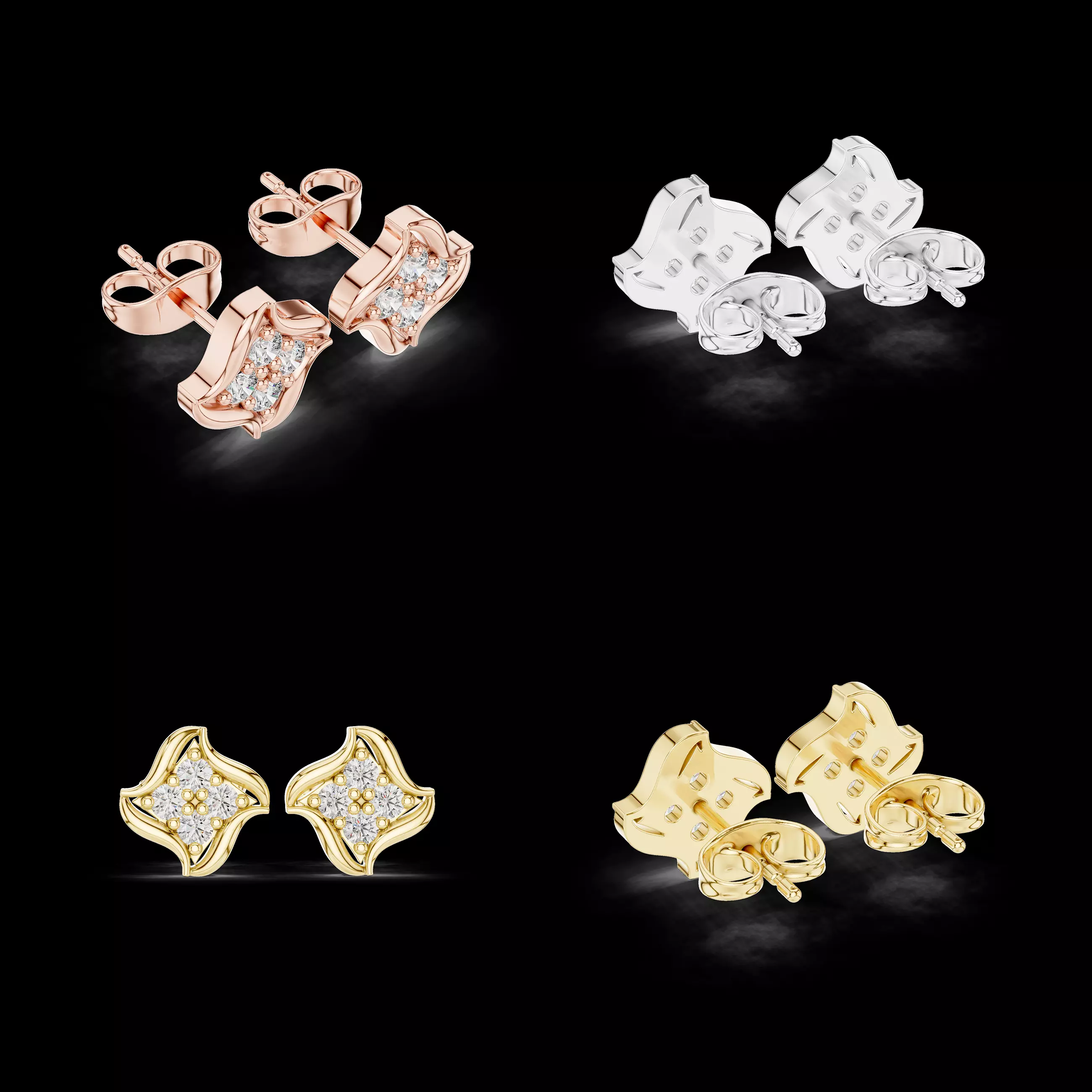 This stud earring features a soft wave-inspired frame that wraps around a sparkling diamond cluster, creating a refined and fluid silhouette. The design feels contemporary yet luxurious, making it suitable for premium collections rather than generic catalog pieces.