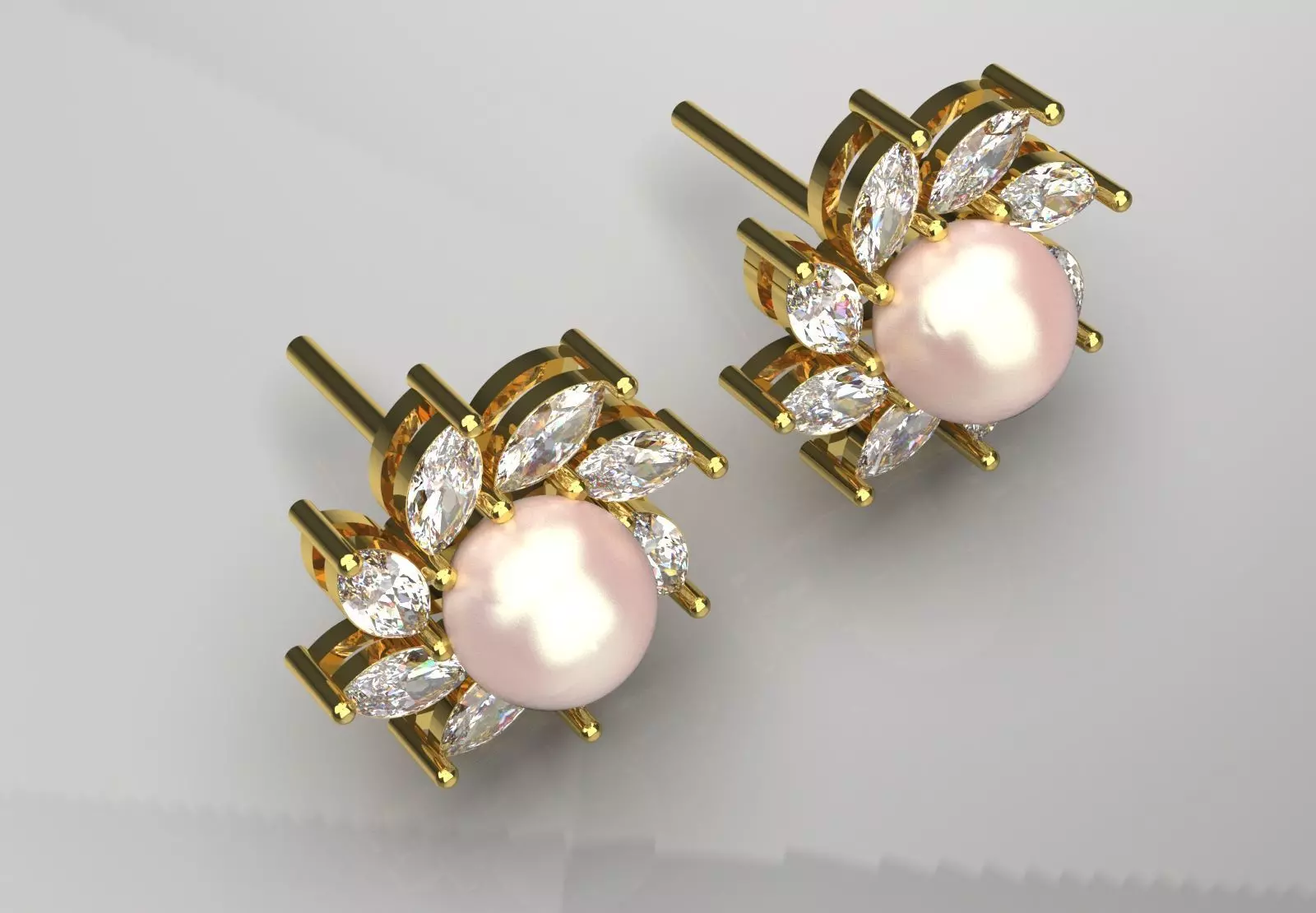 Marquise Cut Pearl and Diamond Stud Earrings Model PE0046 - Classic and Floral Design