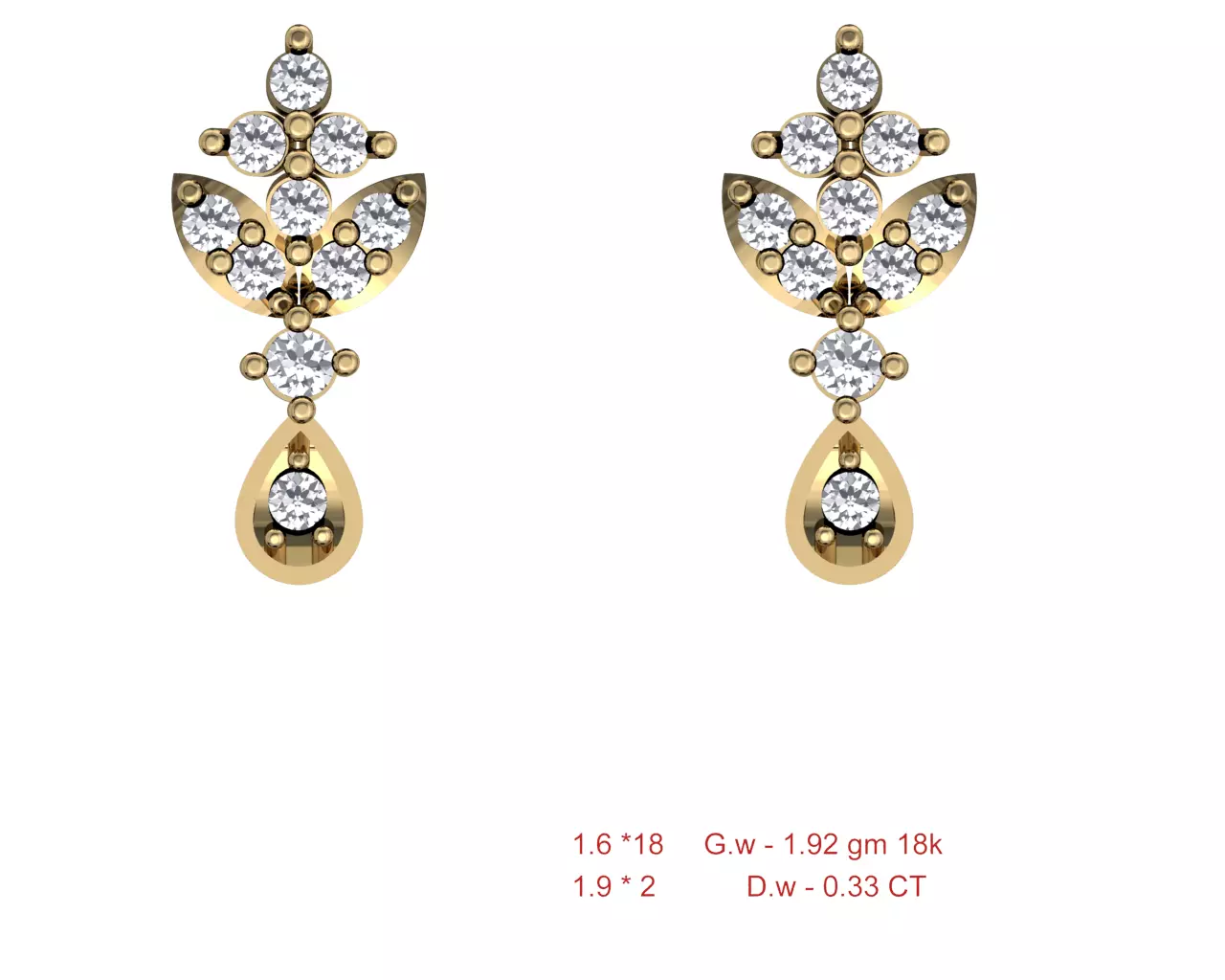 Design Master11provides solutions for cad, render, catalogue and model view for diamond jewellery designs. If you want any changes in this design please contact us, I will get back to you within 5-8 hours. This type of earring maybe called solitaire earring, stud earring, drop earring or halo earring. You can change the stone to round, emerald, heart, pear, princess so the earring will be called as round tone earring, emerald earring, heart earring, pear earring, and princess earring respectively.I have uploaded a render image of the product but you can change the color of stone as per your convenience. For example, if you don’t like the diamond earring, so you can add a red stone for the ruby earring, green stone for the emerald earring, yellow stone for citrin earring, blue stone for the sapphire earring. This is a complete fashion earring which you can wear in your everyday life. You can check some of the most famous earring: oval earring and flower earring