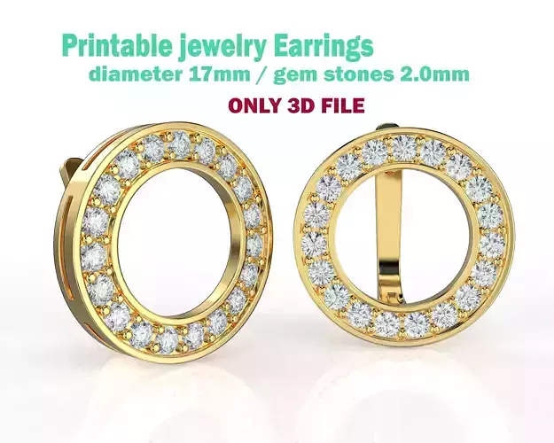 Printable jewelry earring circle 17mm with diamonds 2mm - file STLNOTE: