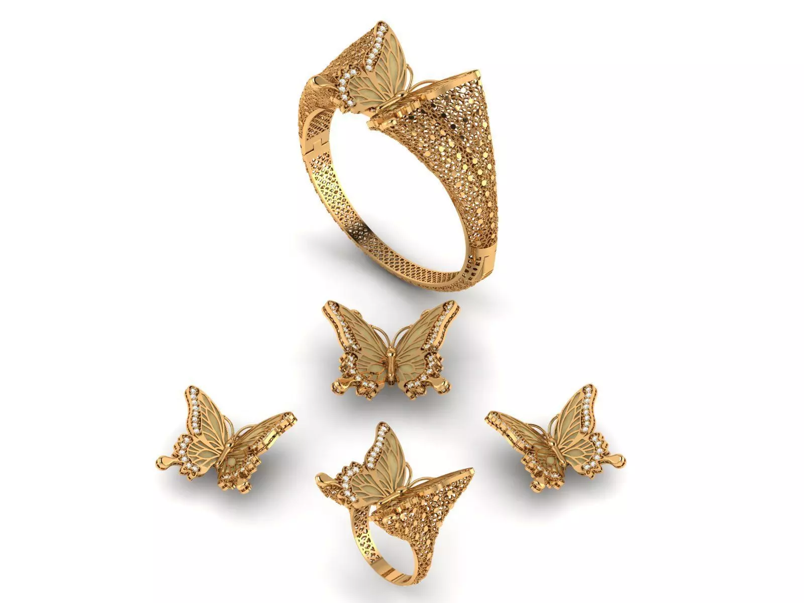 The bracelet weighs approximately 18 grams .Necklace approximately 5 grams.Ring: 5 gramsEarrings 3 grams each 18-k gold