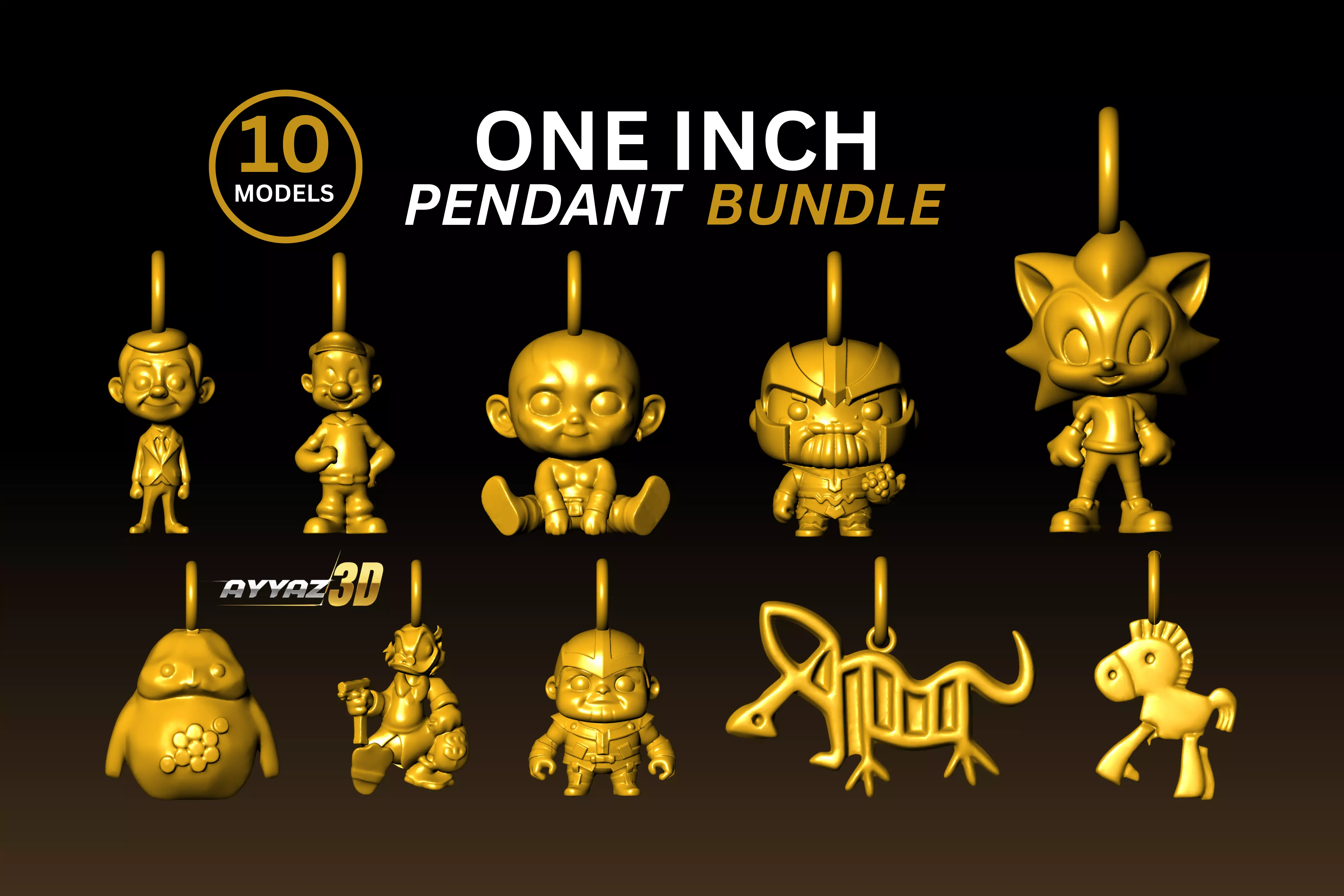 Expand your production library with this versatile 10-piece character pendant bundle. This collection features a mix of pop-culture inspired figures and unique artistic motifs—including stylized heroes, classic cartoon figures, and custom icons—all professionally sculpted for jewelry manufacturing.Key Features:
