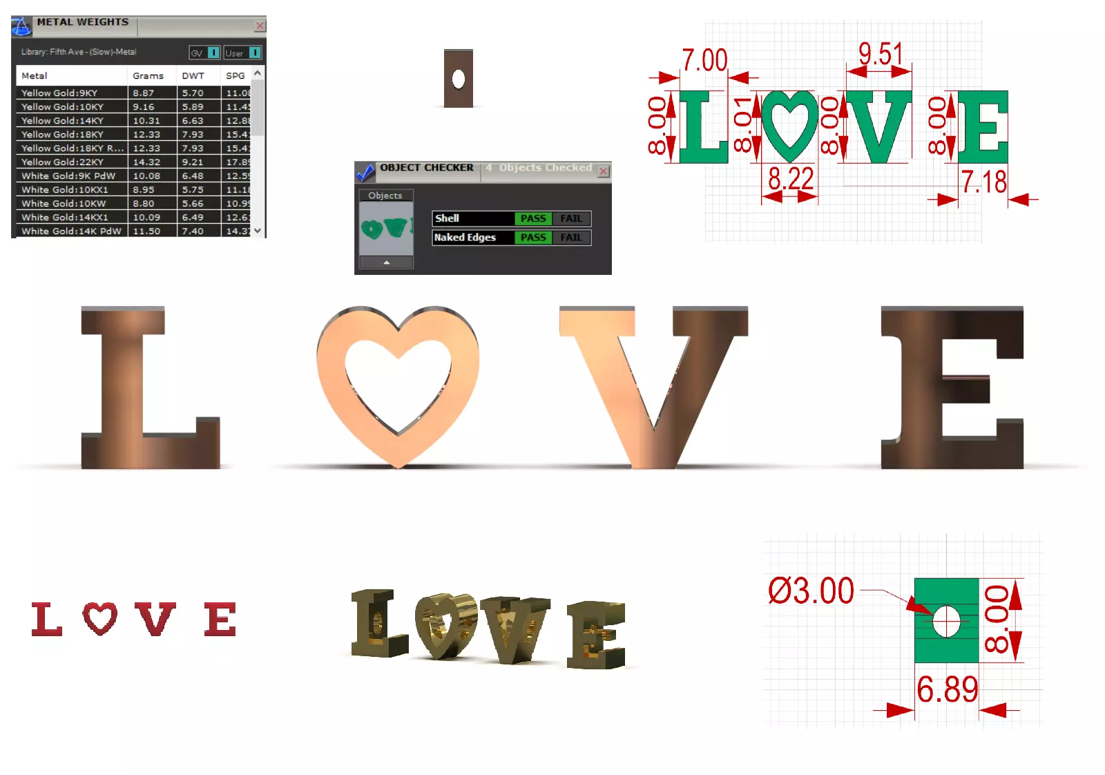 The GP0139 Charm/Pendant is a multi-part, linear and minimal jewelry set that depicts the letters of the word LOVE with the letter O replaced by a heart. This charm is a romantic statement jewelry to show love, feelings and emotional connection.