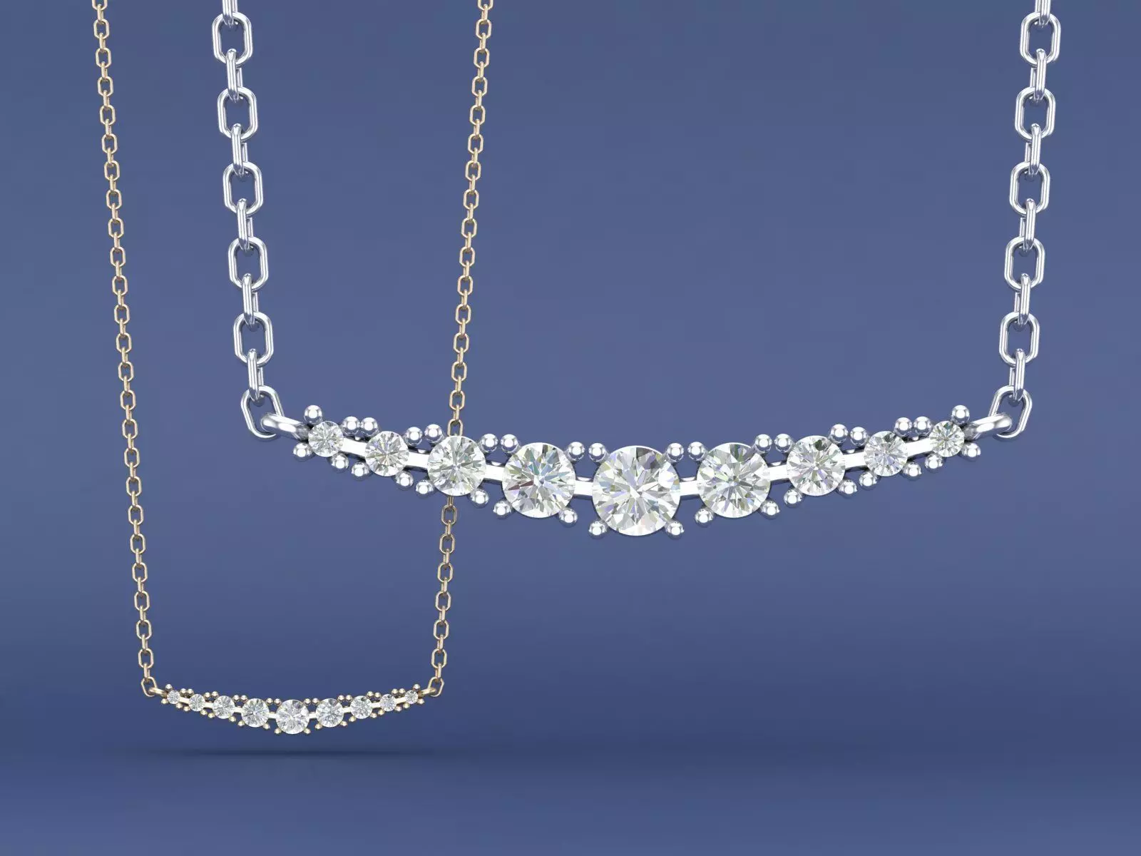Key Features:Design Style: Elegant, modern, and timelessComponents:Pendant: A curved diamond cluster design with a total of 11 round-cut diamonds, arranged symmetrically for a balanced aesthetic.Chain: Sleek and sturdy chain-link design for a contemporary look.File Formats: Includes all standard 3D CAD file types for ease of use in various design and production software:STL (for 3D printing)OBJ3DM (Rhino)STEPIGESDimensions:Pendant width: Approximately X mmChain length: Adjustable, with options for customizationStone Settings: Prong settings for securely holding the stones in placeMaterial Compatibility: Ideal for gold, silver, platinum, or custom alloysApplications:Jewelry production (casting or direct 3D printing)Custom jewelry design projectsPrototyping and visualization for clients3D modeling and rendering for e-commerce or marketingAdditional Information:The design ensures minimal material waste during production.High attention to detail for superior finish and precision.Ready-to-use file for seamless integration into your production workflow.Licensing:This file comes with a standard license for personal and commercial use. Redistribution or resale of the digital file is strictly prohibited.