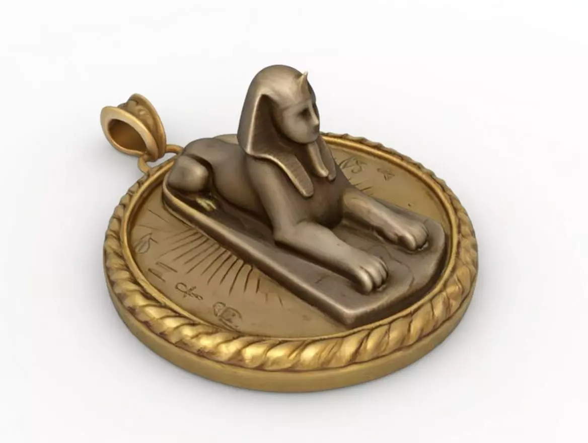 Discover this highly detailed Egyptian Sphinx Pendant 3D model, inspired by ancient Pharaonic art and mythology. Perfect for 3D printing jewelry, silver/gold casting, resin prototypes, necklaces, amulets, or keychains.The design features a classic recumbent sphinx with nemes headdress, resting on a circular braided base with authentic hieroglyph inscriptions and radiant sun motif – ideal for historical reenactment, cultural gifts, VR/AR projects, or game assets.Ready-to-print STL file included, optimized for jewelry production (high detail, manifold geometry). Compatible with SLA, FDM, and metal casting workflows.