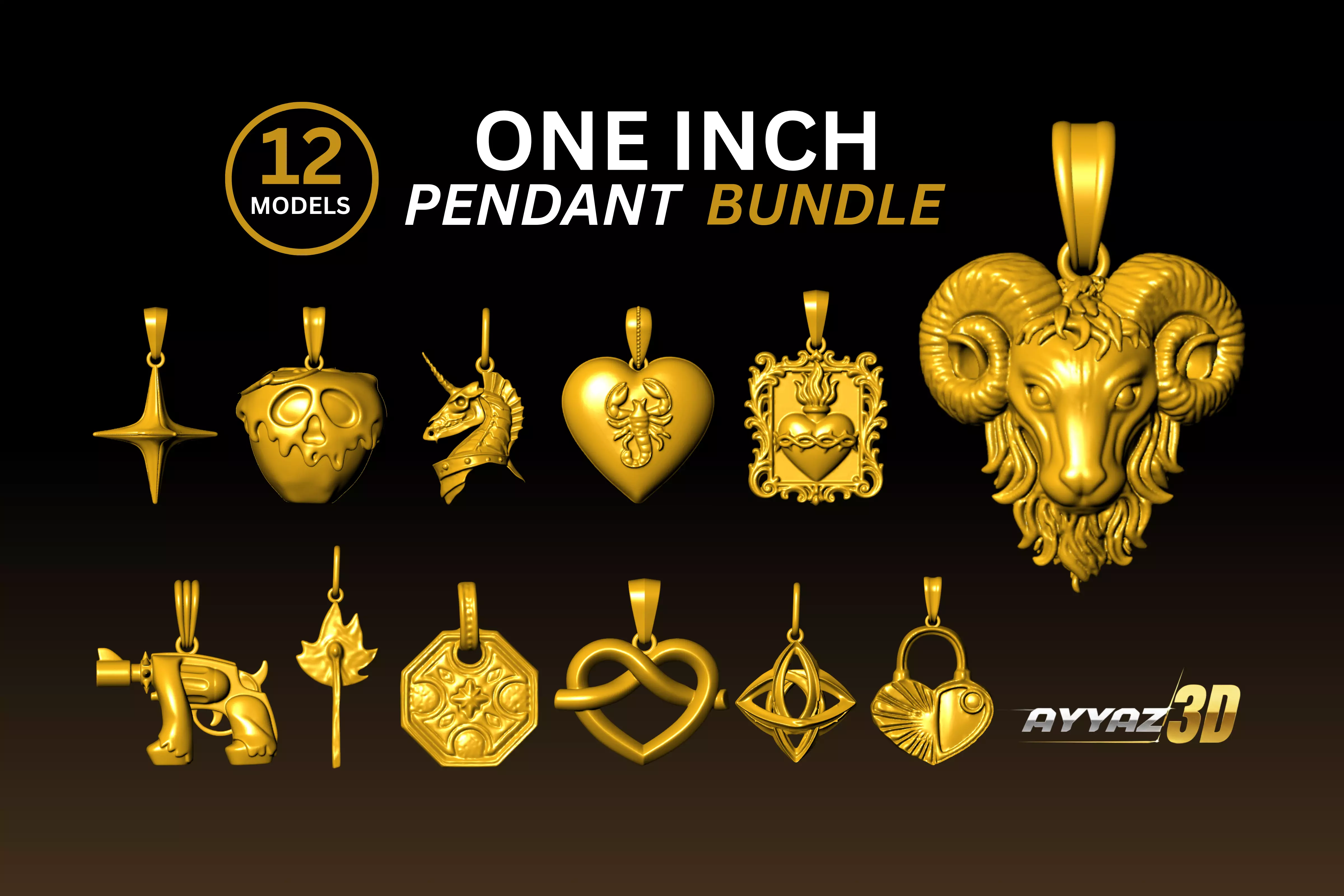 A premium collection of 12 gothic, symbolic, and aesthetic pendant designs created for high-quality jewelry making and 3D printing.