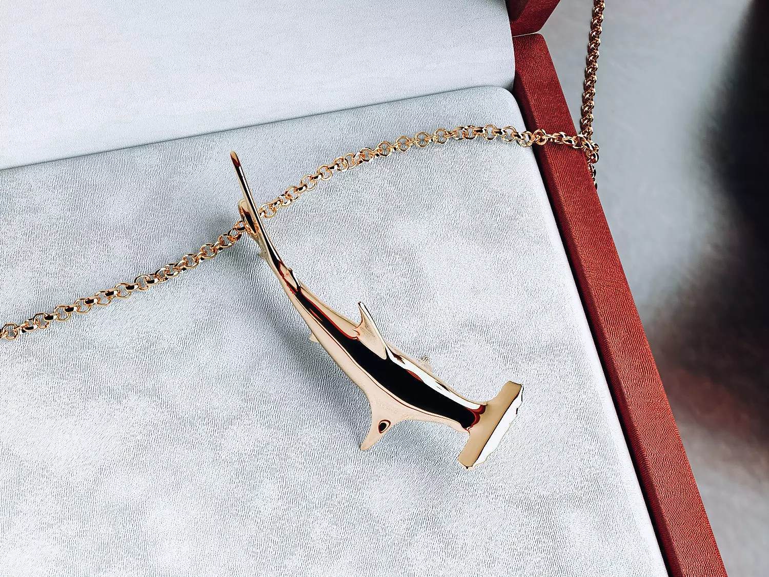 golden or silver body of hammerhead shark necklace