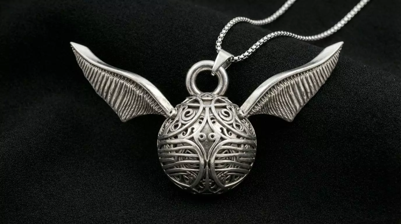 Capture the thrill of the wizarding world's favorite sport with this intricate 3D printable Golden Snitch pendant. This model features a beautifully detailed spherical body adorned with delicate openwork filigree and majestic outstretched wings. The minimalist yet expressive silhouette creates a modern, mystical vibe that serves as a perfect everyday accessory for any fan of magic. Designed for high-fidelity casting, the fine feather textures and circular frame elements shine brilliantly in polished silver. This versatile piece works wonderfully as a standalone necklace focal point or a unique charm for a magical collection.