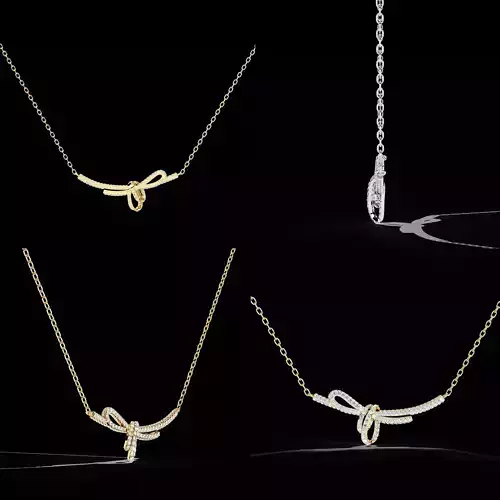 Design DetailsThe necklace features a knot or bow-style central design element.Smooth curved lines create a soft and elegant visual flow.Diamond detailing enhances the centerpiece without adding excess weight.The chain is balanced to provide comfort and natural movement.Stone settings are accurately aligned for secure placement and clean finishing.Clean geometry supports reliable casting, polishing, and assembly.The CAD construction is optimized for professional jewellery manufacturing workflows.