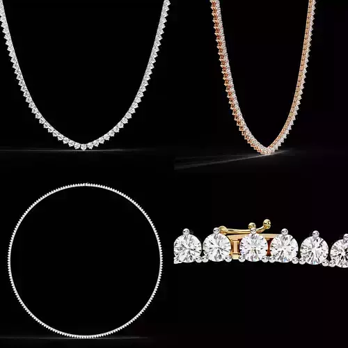 Design FeaturesClassic luxury tennis necklace designUniform round diamond alignmentAccurate and secure stone seat structureSmooth surface finish for easy polishingFlexible and durable link constructionManufacturing ready CAD model