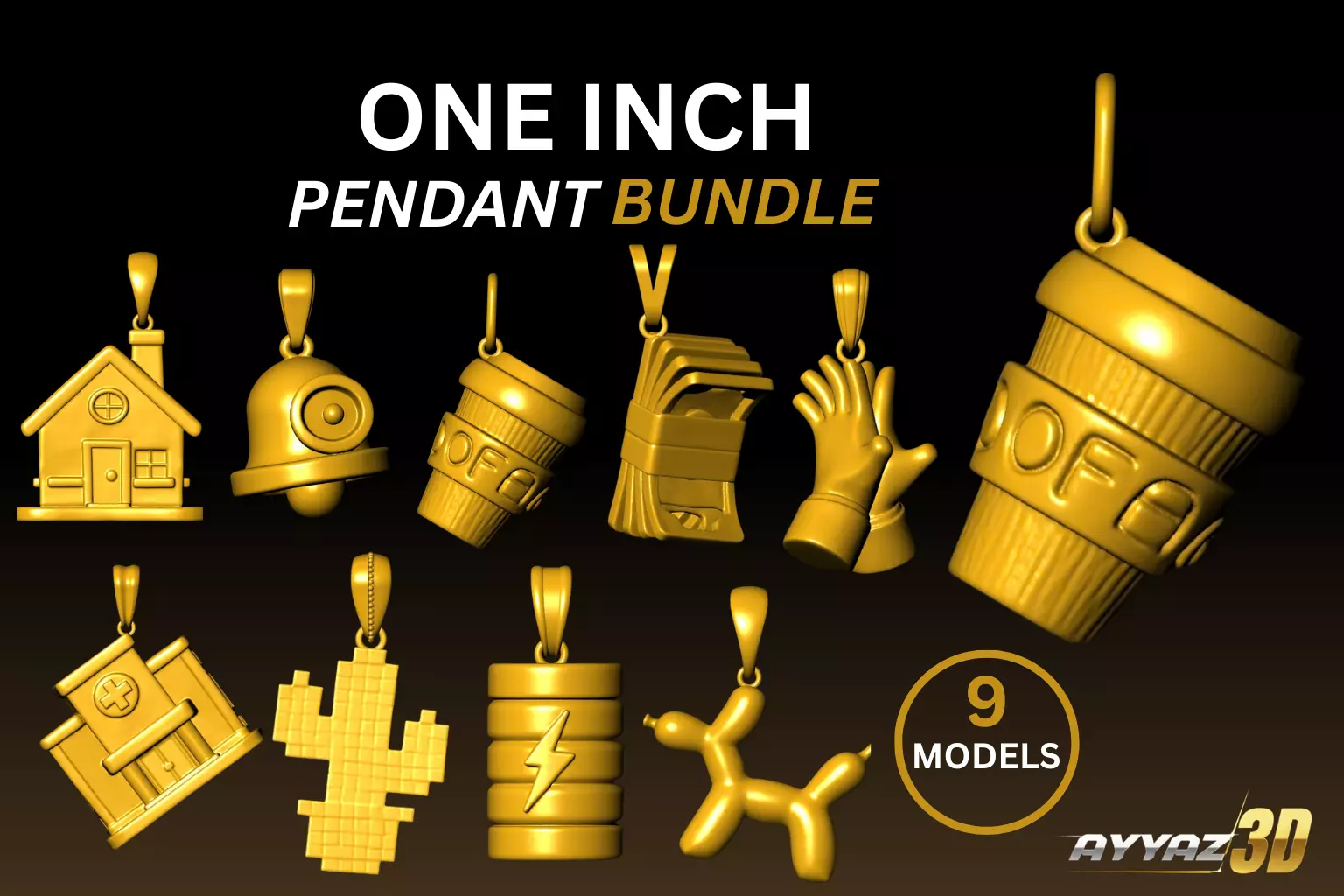 A collection of 9 unique one-inch charm pendant designs created for jewelry making and 3D printing.This bundle includes a variety of modern and playful mini pendant models perfect for necklaces, charms, and custom jewelry projects.