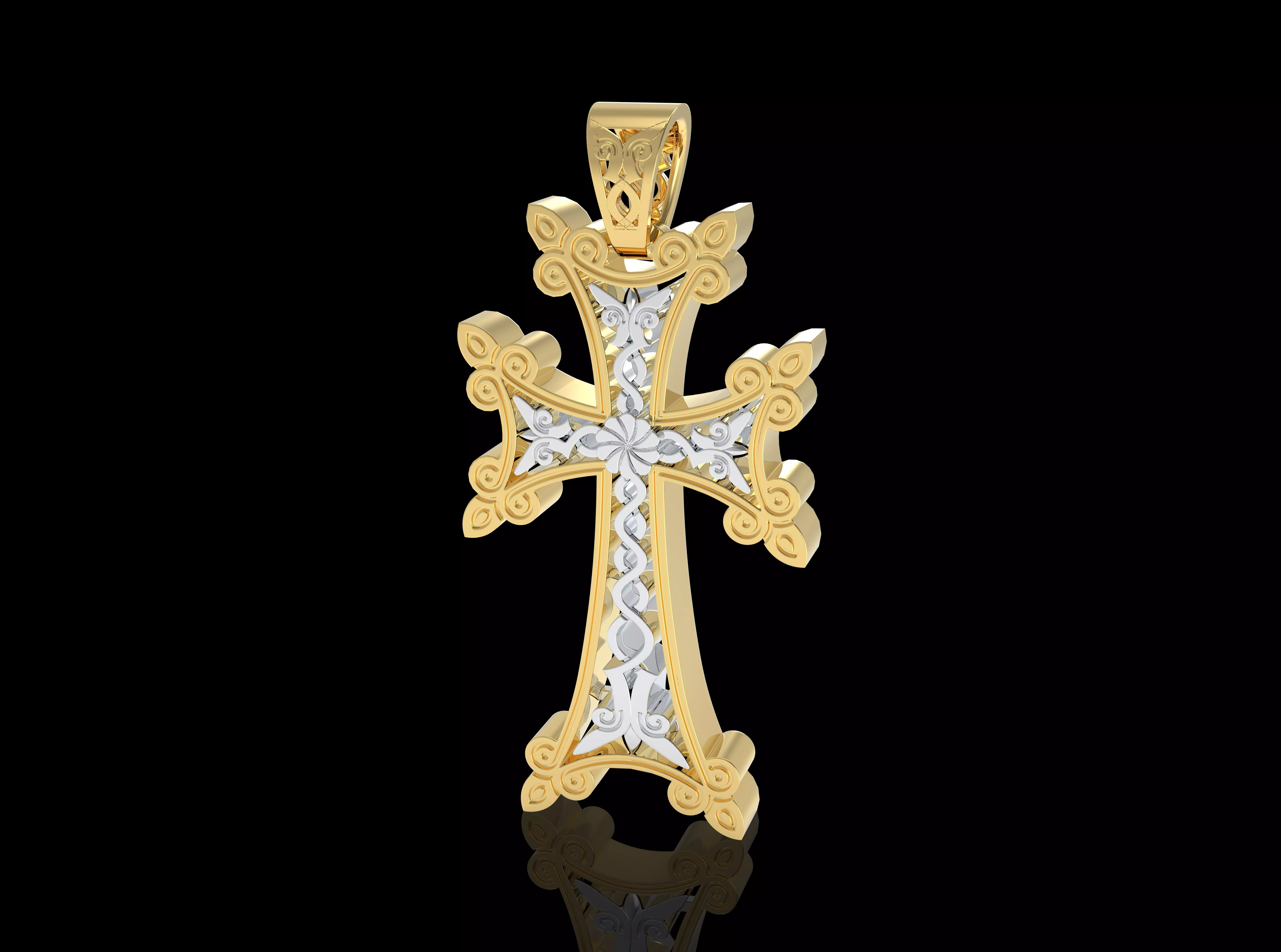 Hi there!The cross consists of 3 details, which make easier to cultivate the cross fully and gives high quality to the jewelry. The hanger is working without problems. The cross can be used with any kind of gold color includes white , yellow and rose. The cross has been produced and designed by our copmany. STL formats are also available. All the technical details are shown in the pictures and the cad model has been tested by our technologist-jewelers.