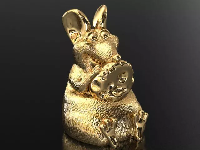 We have a gold or silver necklace with a pendant in the shape of a mouse holding a long cheese. The cheese is held in front with both hands. This necklace is light and easy to wear.note that we are currently selling this item.The symbol of a mouse often represents curiosity, adaptability, and resourcefulness. In many cultures, mice are also associated with intelligence and quick thinking.