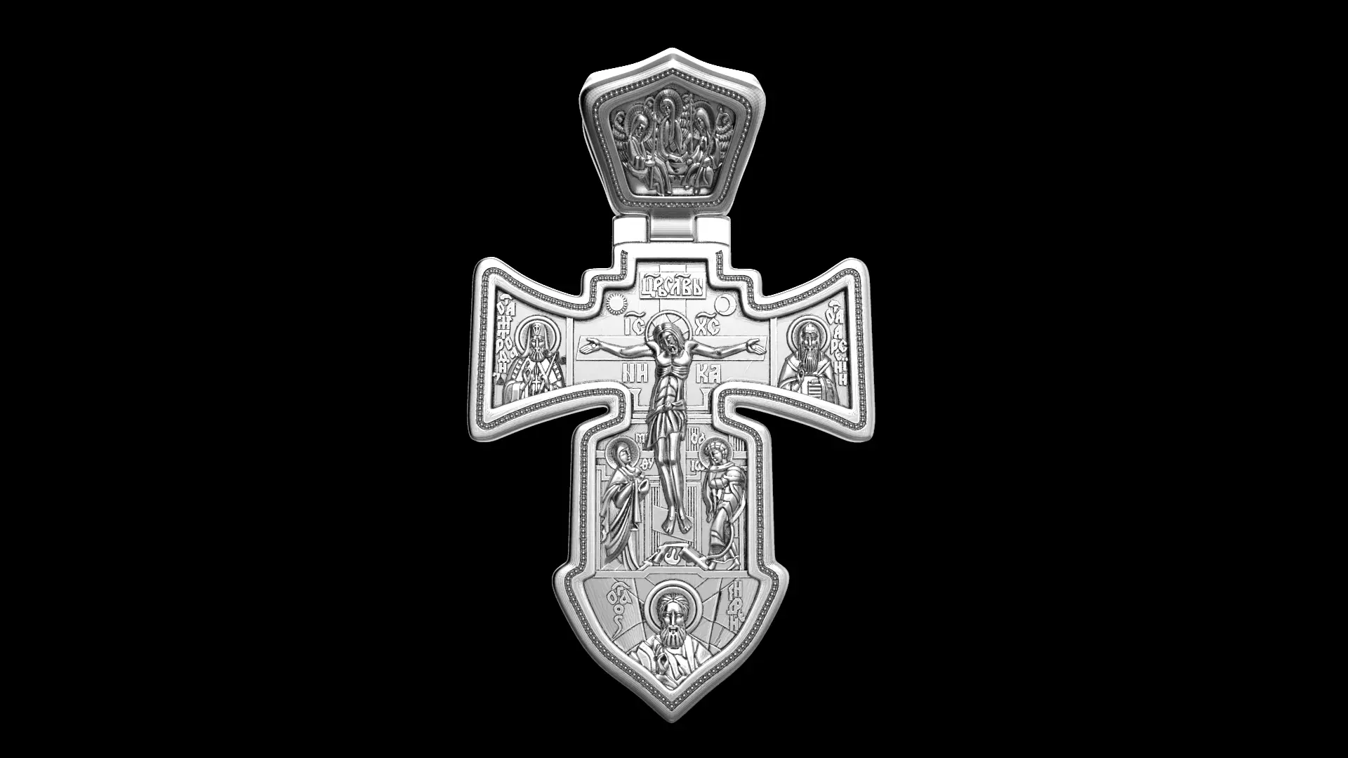Crucifixion. Guardian Angel. Neck Cross. OrthodoxThe anchored cross, or mariner's cross, is a stylized cross in the shape of an anchor. It is a symbol which is shaped like a plus sign depicted with anchor-like fluke protrusions at its base. There are many variations on this symbol, but the most common form connects a ring with a bar, with a cross-bar, terminating on the other end with two curved branches or arrowheads. The anchor symbolizes hope, steadfastness, calm and composure.[1] It also can symbolize security in one or more uncertain experiences of life, such as sea voyages, one's fate after death, and the vagaries of fortune.