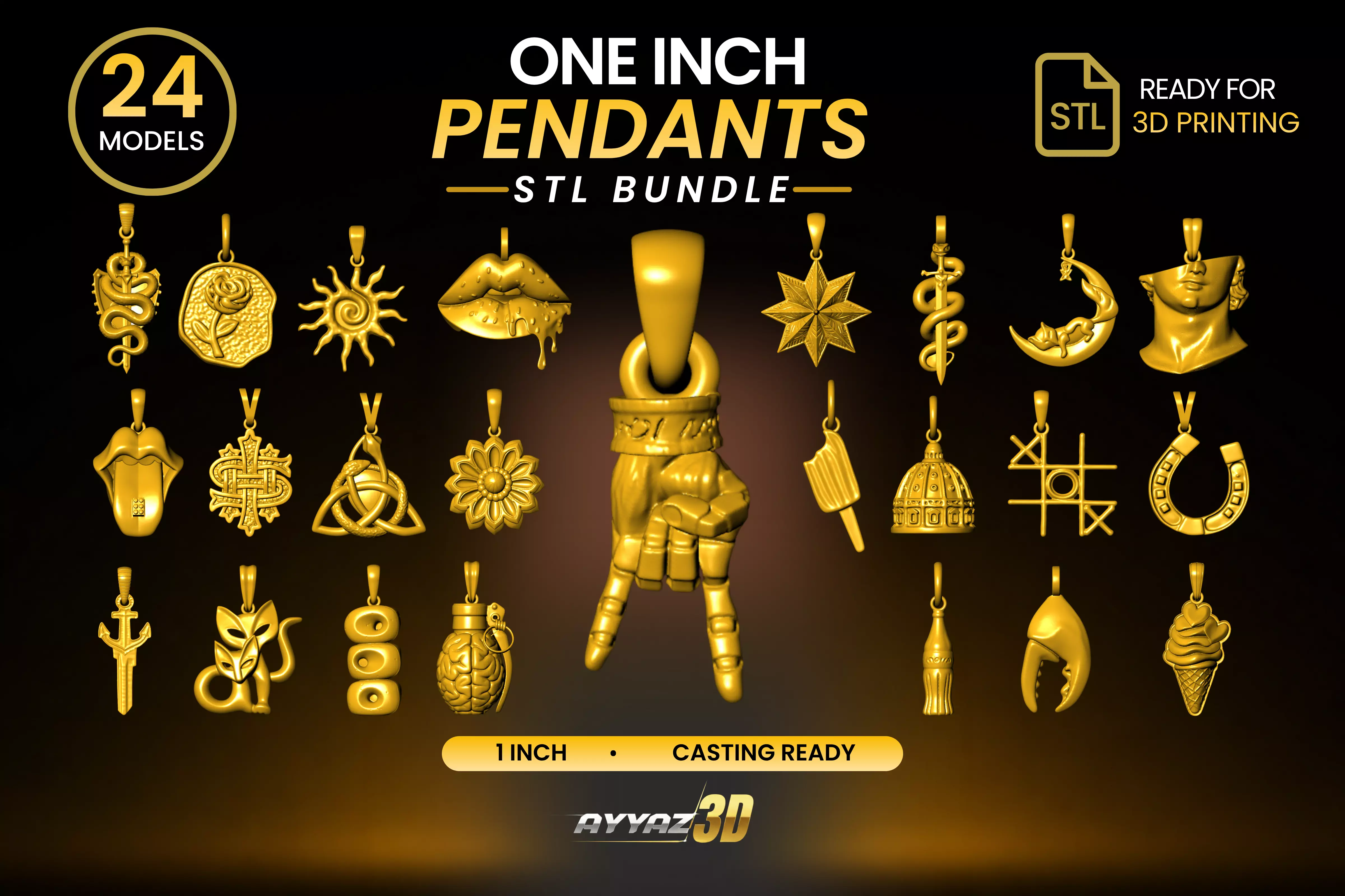 Crafted for the One Inch Pendant niche, these models are designed to make a statement. Each piece is optimized for high-end production, ensuring sharp details and smooth finishes for both 3D printing and professional casting. What’s Included: