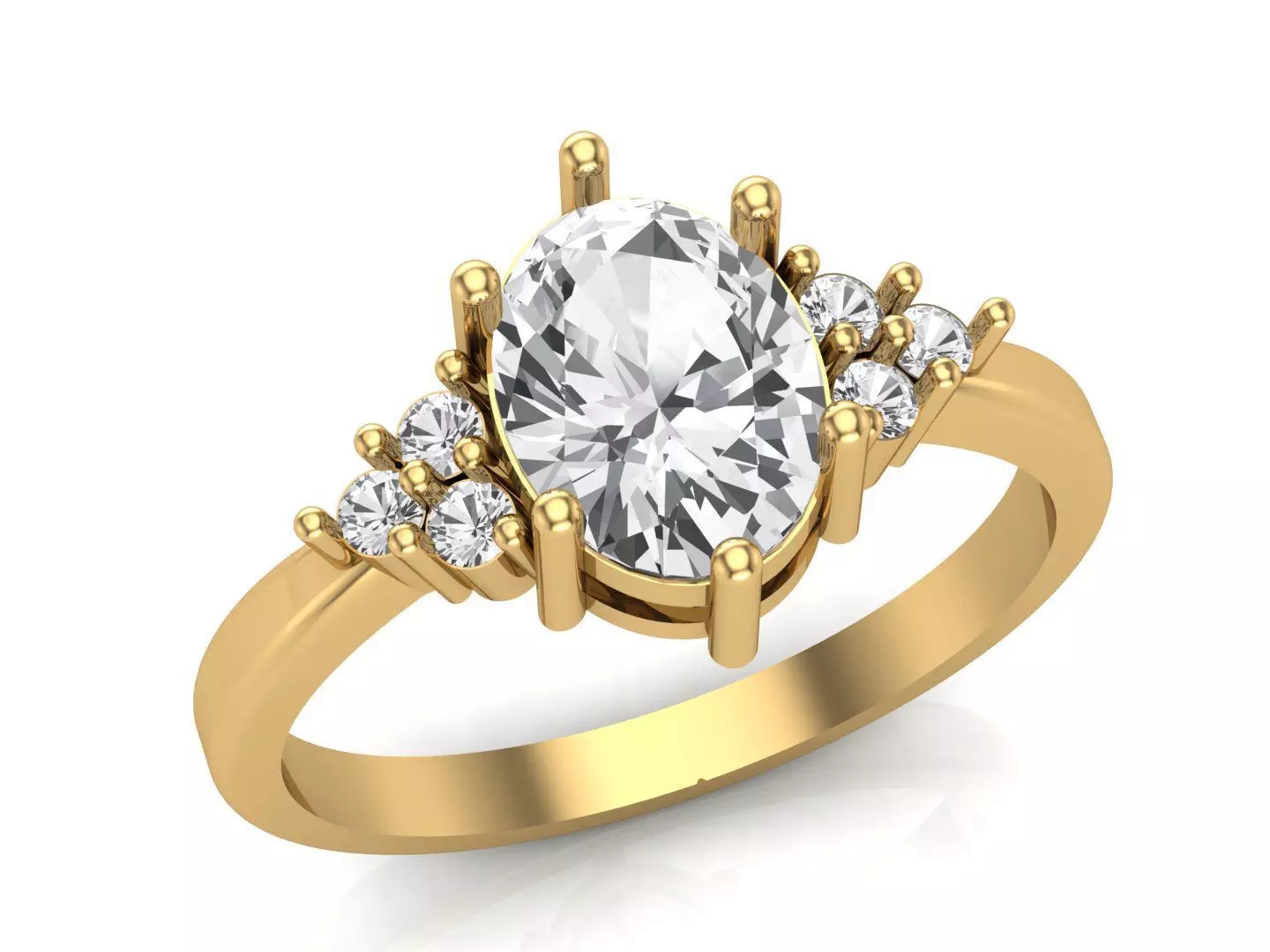 Oval Ring STL 3D model with elegant oval gemstone setting. Perfect for jewelers, CAD designers, 3D printing, and professional jewelry casting.