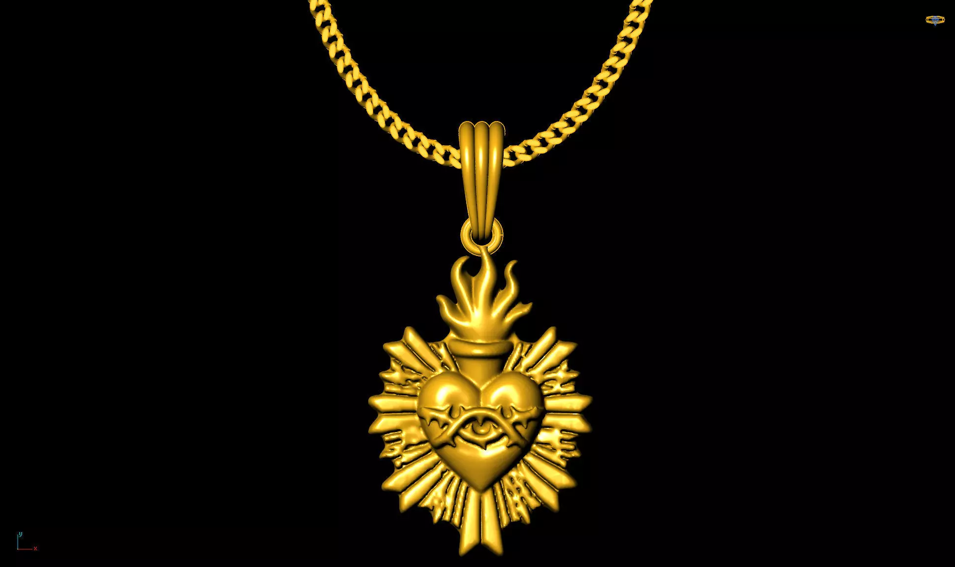 Flame heart pendant charms - one inch pendant 3D print model