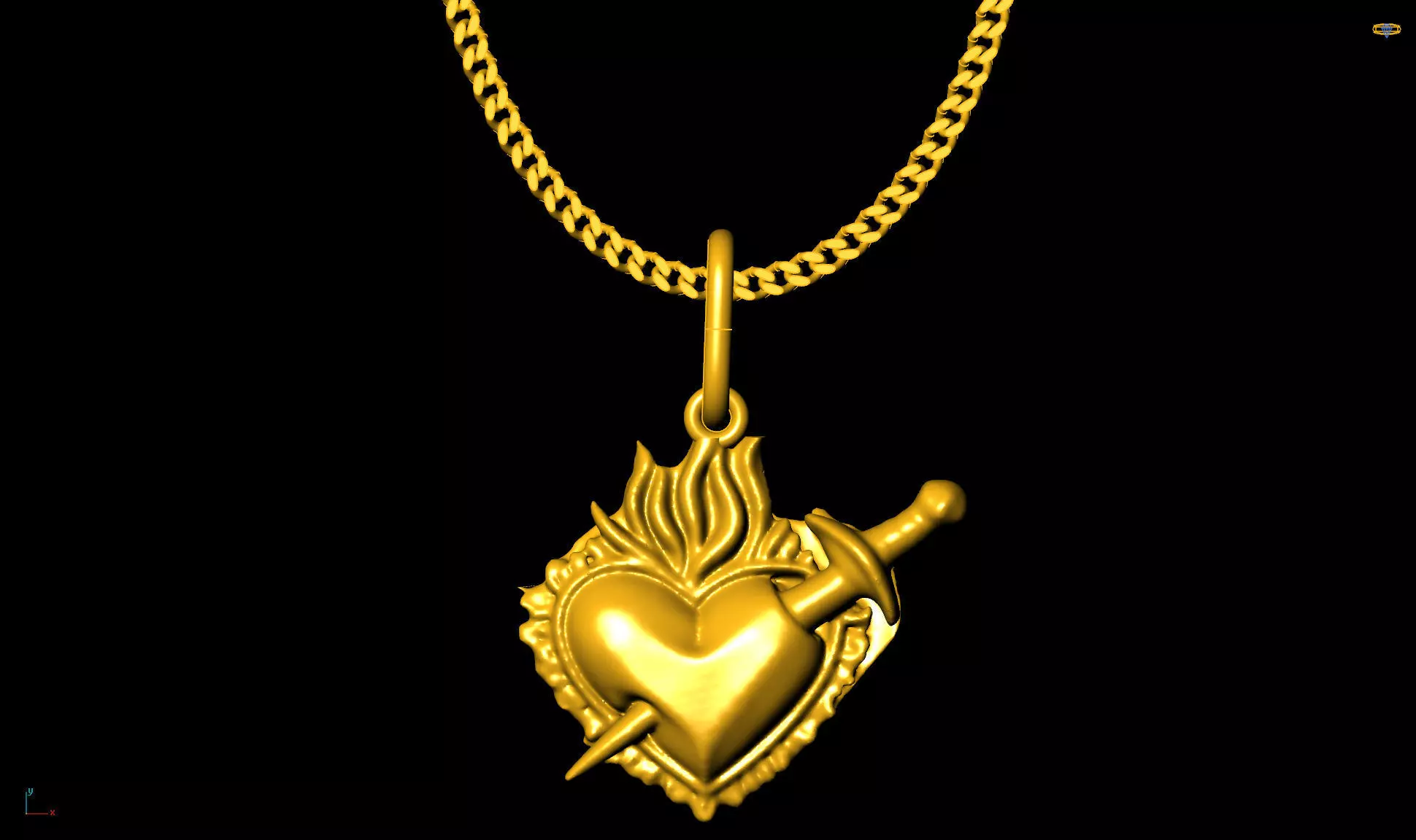 Sword flame heart pendant charms - one inch pendant 3D print model