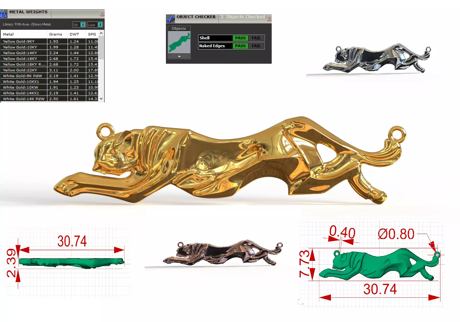 The GP0057 Plaque/Pendant is an avant-garde, voluminous, three-dimensional piece of jewelry designed in the shape of a silhouette of a running or leaping leopard or jaguar. This plaque is a powerful statement piece to showcase courage, speed, strength and independence.