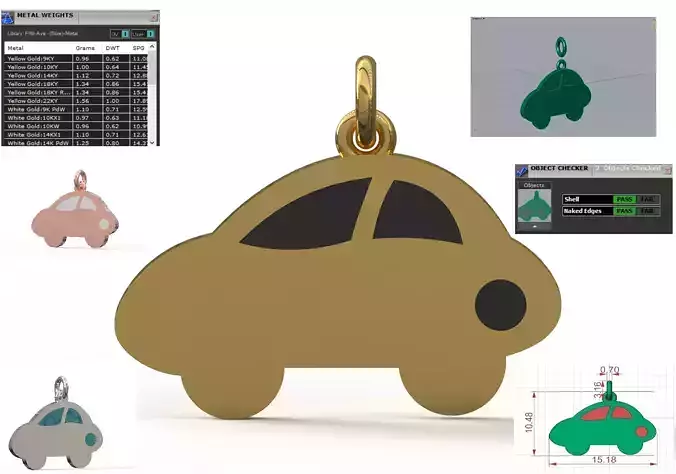 Body: The main body of the car is filled with matte or polished yellow gold metal.