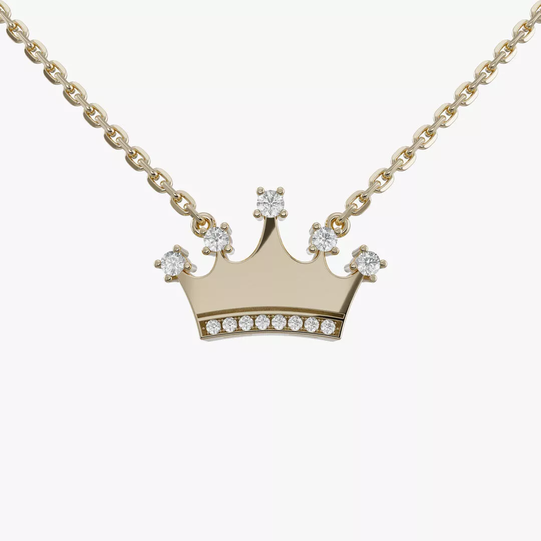 Elegant, symbolic, and refined, the QUEEN necklace is a delicate interpretation of power, confidence, and femininity.Inspired by the form of a royal crown, this design captures the essence of inner strength and grace in a minimal yet radiant composition. The crown silhouette, softly curved and balanced, is adorned with precisely placed diamonds that enhance its brilliance while preserving its clean and modern aesthetic.Despite its compact size, QUEEN delivers a strong visual presence—making it perfect for layering with other necklaces or wearing alone as a subtle statement piece. It is designed for those who appreciate symbolic jewelry that reflects identity, confidence, and elegance.A timeless piece that celebrates individuality and quiet luxury, the QUEEN necklace is an ideal gift or a personal signature accessory.Available in rose, white, champagne, and yellow gold